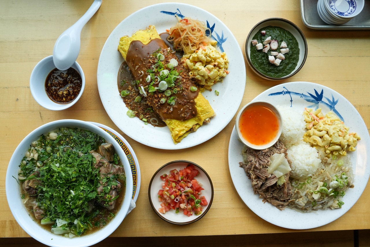 Instead, the Hiraharas draw inspiration from Oahu’s chain diners, drive-ins and mom-and-pop cafes — places many tourists never tread. If the menu is “elevated,” it’s because of the quality of the ingredients the married chefs choose and the technique they employ: the premium Skuna Bay salmon in the lomi-lomi and poke bowls, the diced potatoes hiding in the mac salad. Still, this is local food with locals in mind.
