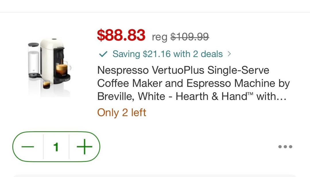 We also primarily drink double espresso pods and had no need for the carafe sizing of some of the other machines. We bought the one for the house from Macy’s on a pre-Black Friday Deal and got it plus the Aeroccino for $119. Can’t go wrong!
