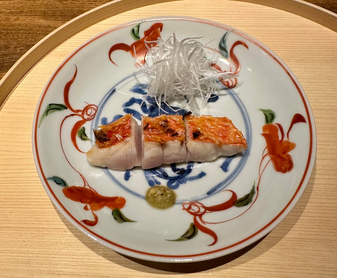 Grilled kinmedai with mizansho sauce – Crispy scales, incredibly juicy, and just perfectly cooked. Another simple preparation that highlights the superior quality of the fish and I loved the floral mizansho sauce.