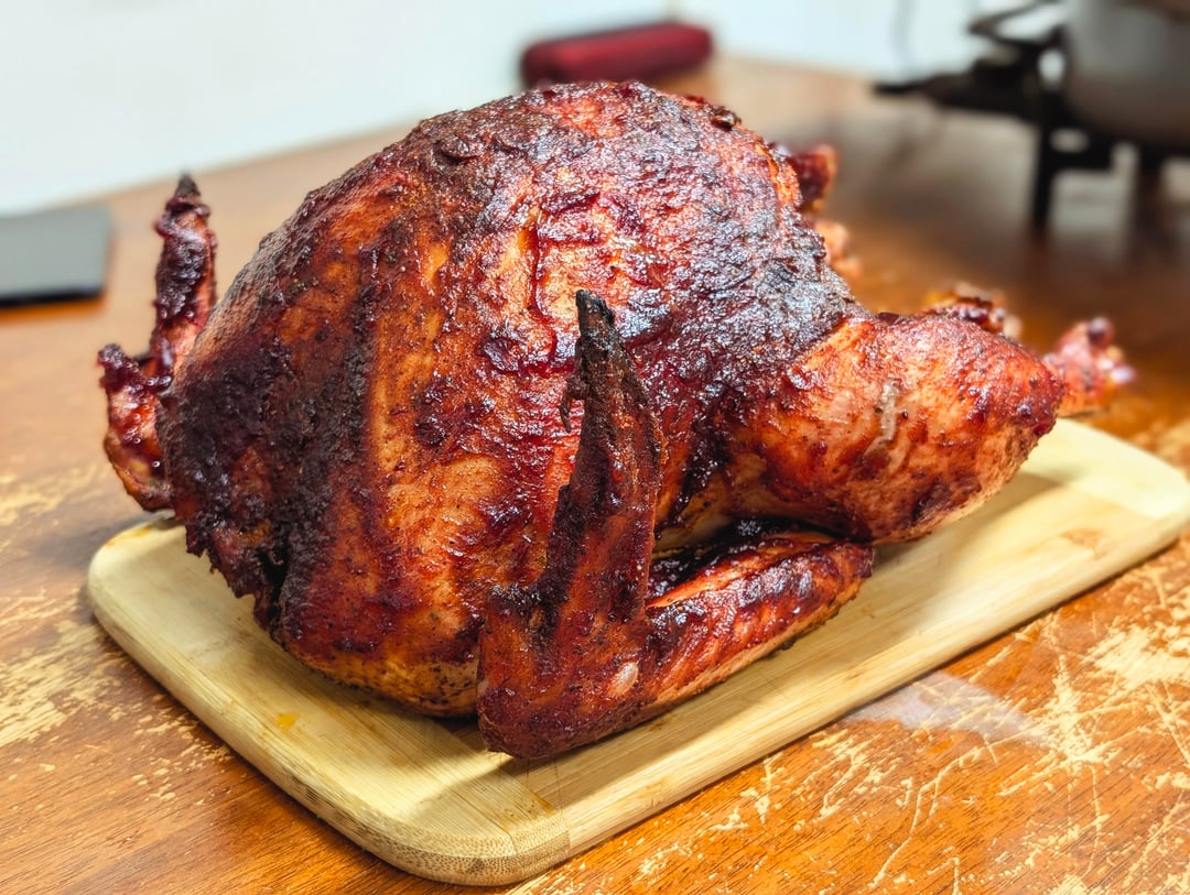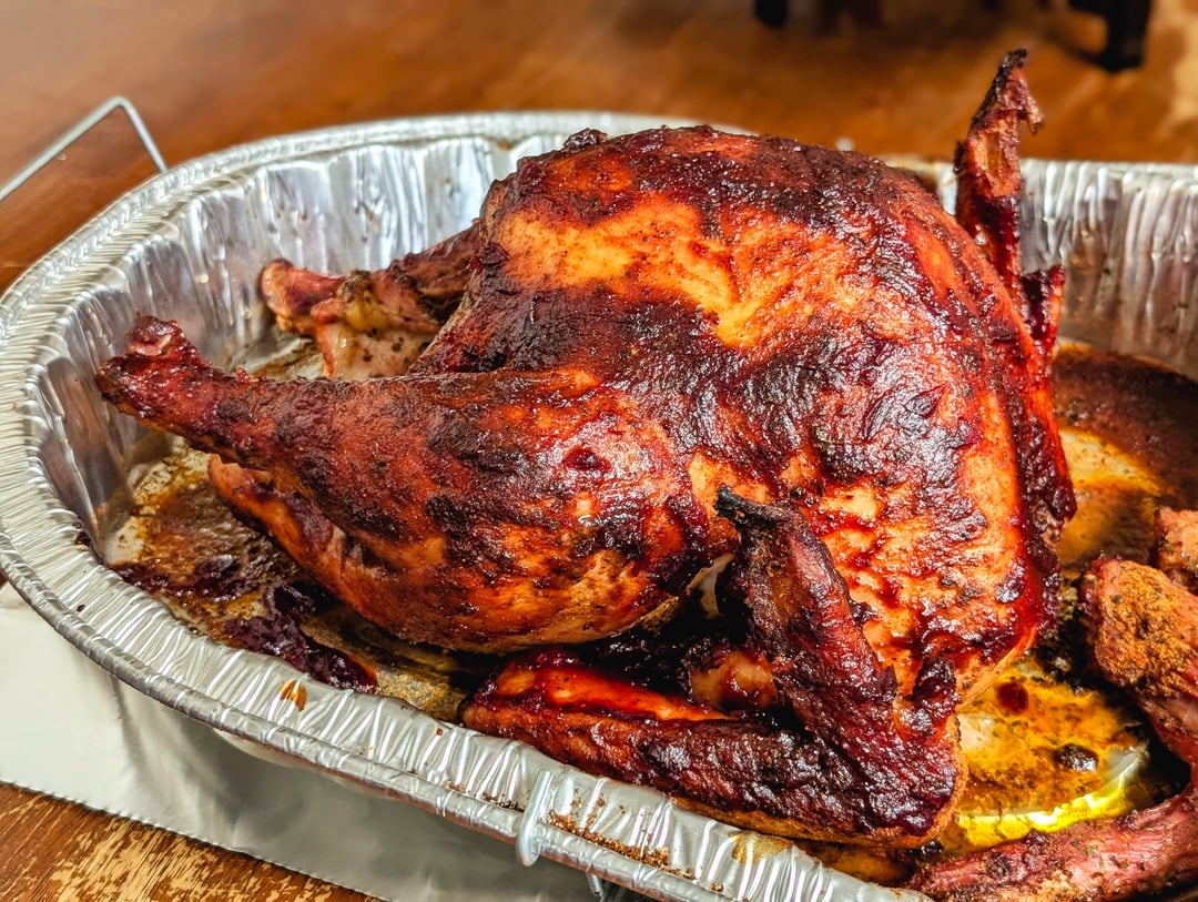 Smoked turkey brushed with a cranberry hot honey glaze