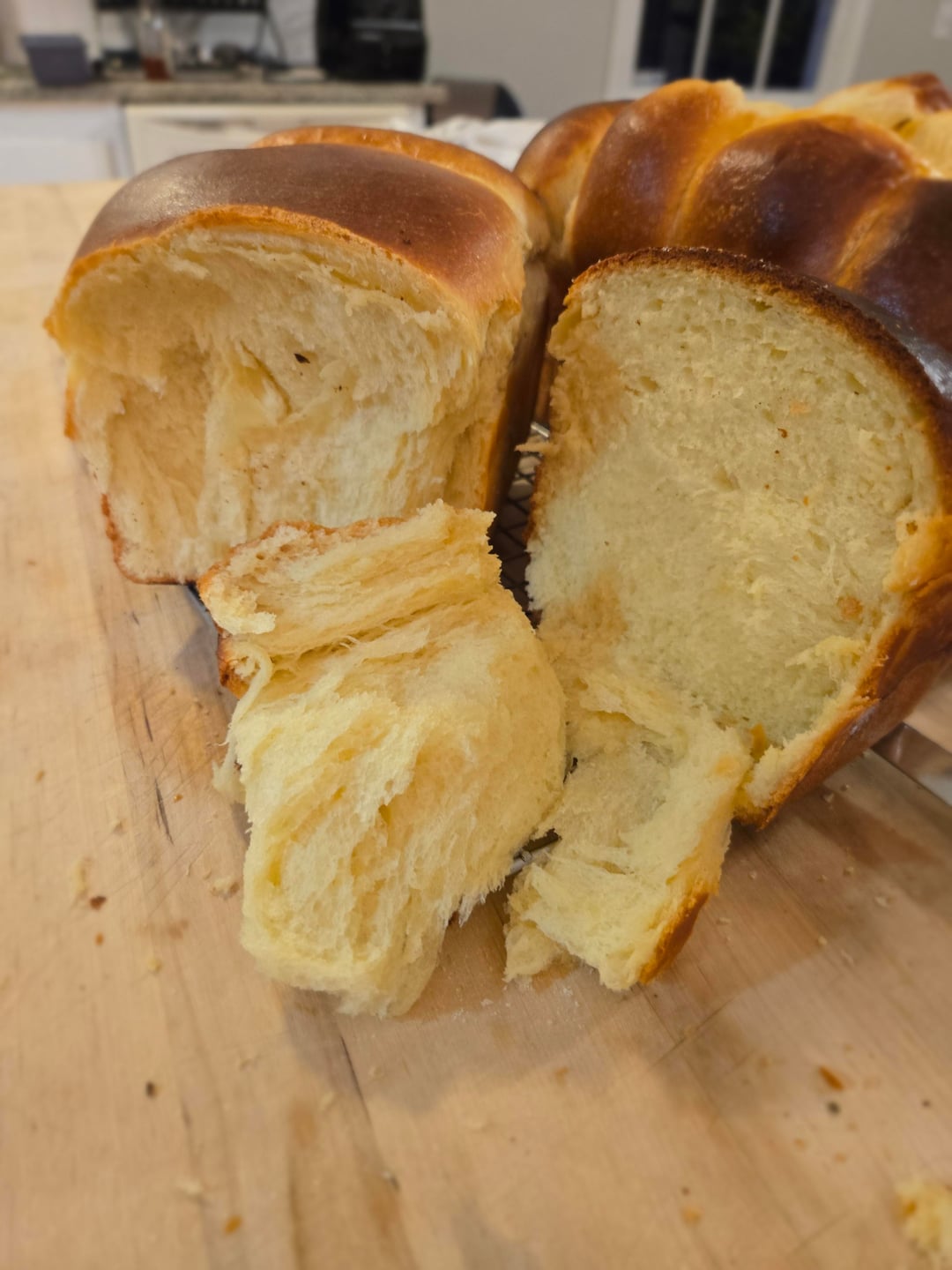I let it rest for 20 minutes before tearing it open and slicing off a piece. I started eating the slice immediately so the last two photos are a little messy. I'm thrilled with the results! It's fluffy and delicious. Definitely a labor of love though. I'll be sticking to overnight lean doughs for my weekly consumption and save this for special occasions