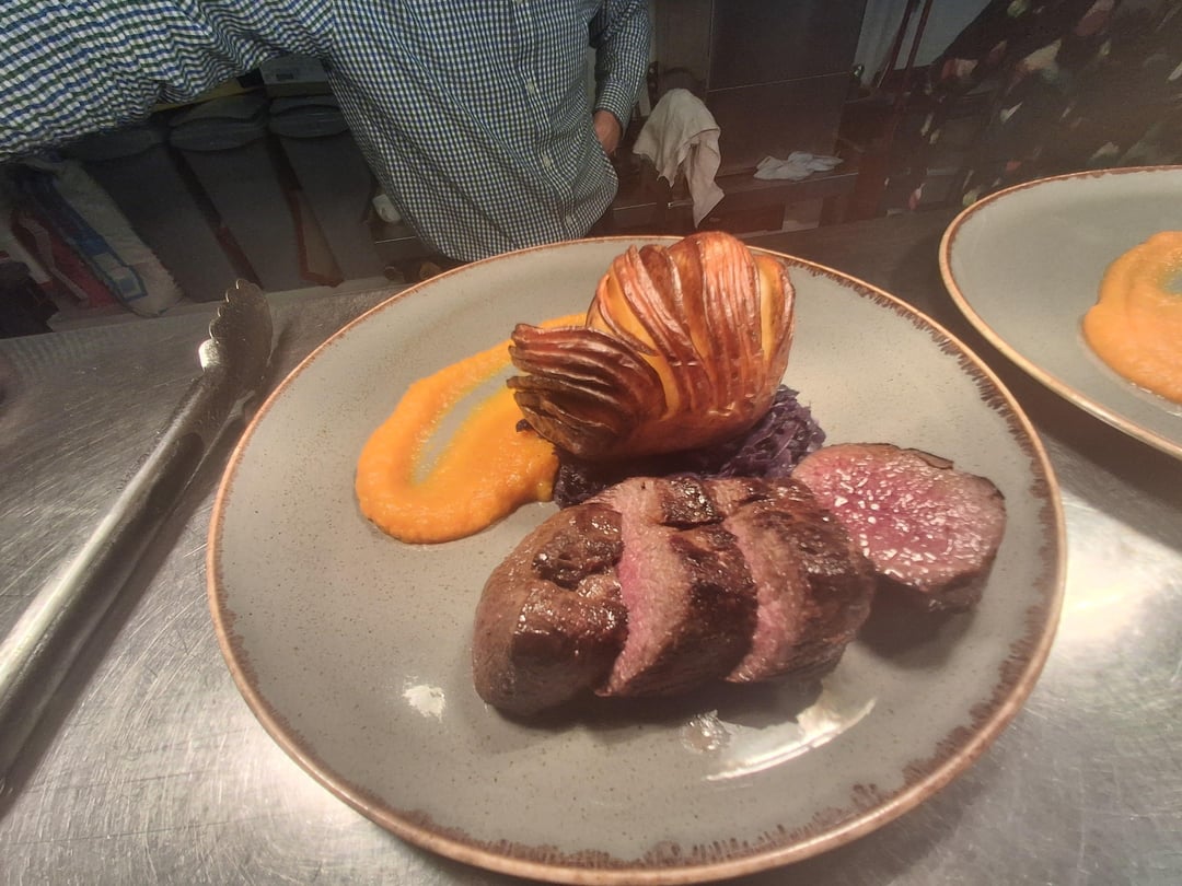 Btw, photos in order are monkfish with lemon curd sauce, lamb rump with cauliflower and fondants, pigeon and granola, and our venison with pumpkin puree.