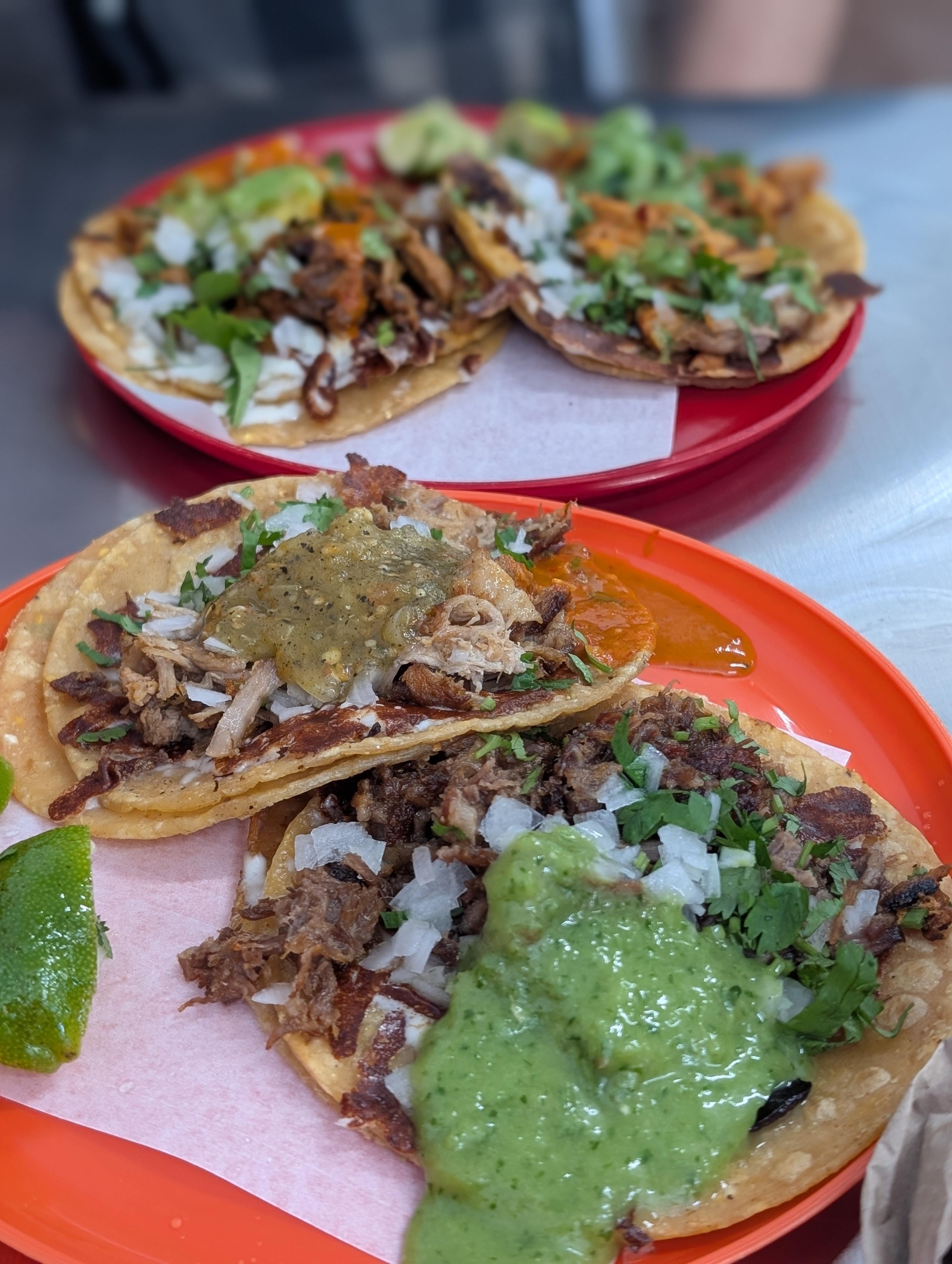 Suadero, carnitas, pollo, and al pastor in the background. I got the fried cheese on them too. So good. Can't wait to go back!by 50million Dining and Cooking
