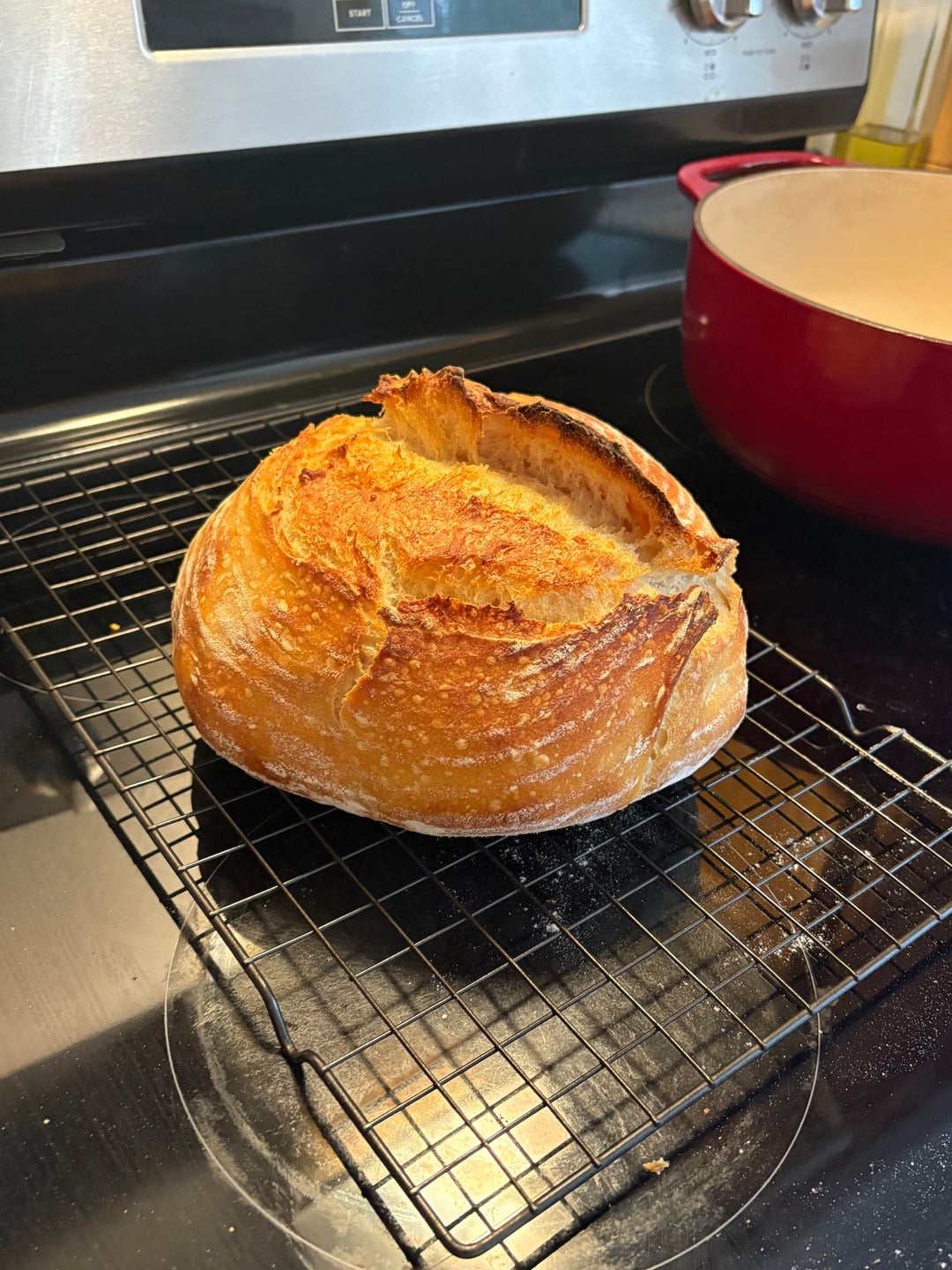 I think I let my leaven (is that what the fed/active starter that is going to be used for the dough called??) ferment for too long. It peaked and then started to go back down before I incorporated it into the dough.. I also think that I baked it for too long because the crust was super hard.