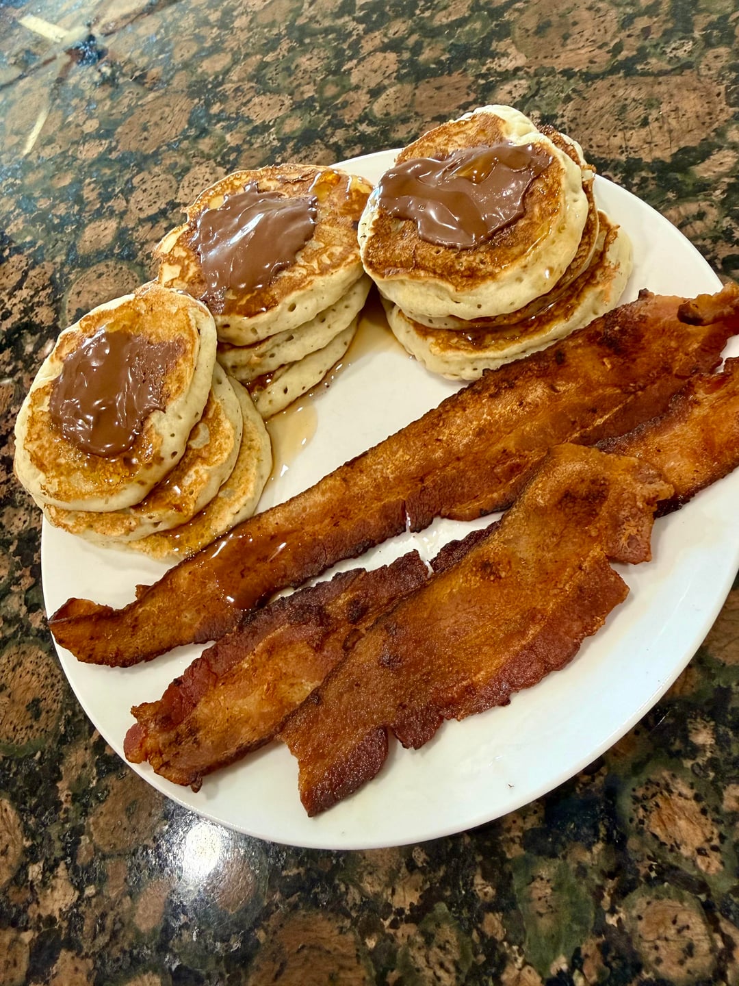 And I really wanted to try this hazelnut chocolate spread so I added it along with maple syrup. 🫣 It was GREAT. by GreenCrayonTheory 1 Comment RockCakes-And-Tea-50 1 month ago Yummy. We call them pikelets in Australia. 😋