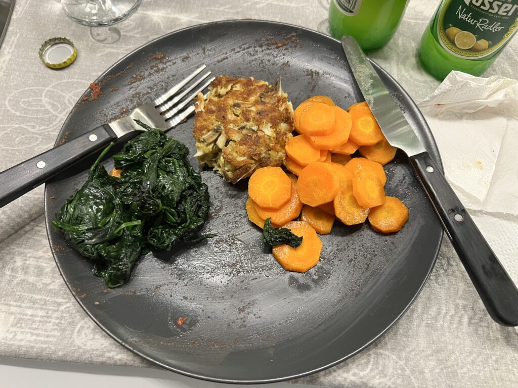 The crabcake dinner Barban and Zehner enjoyed after a full evening of steaming and picking. Photo by Nicole Zehner