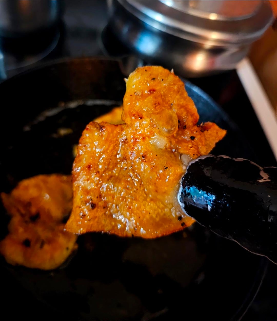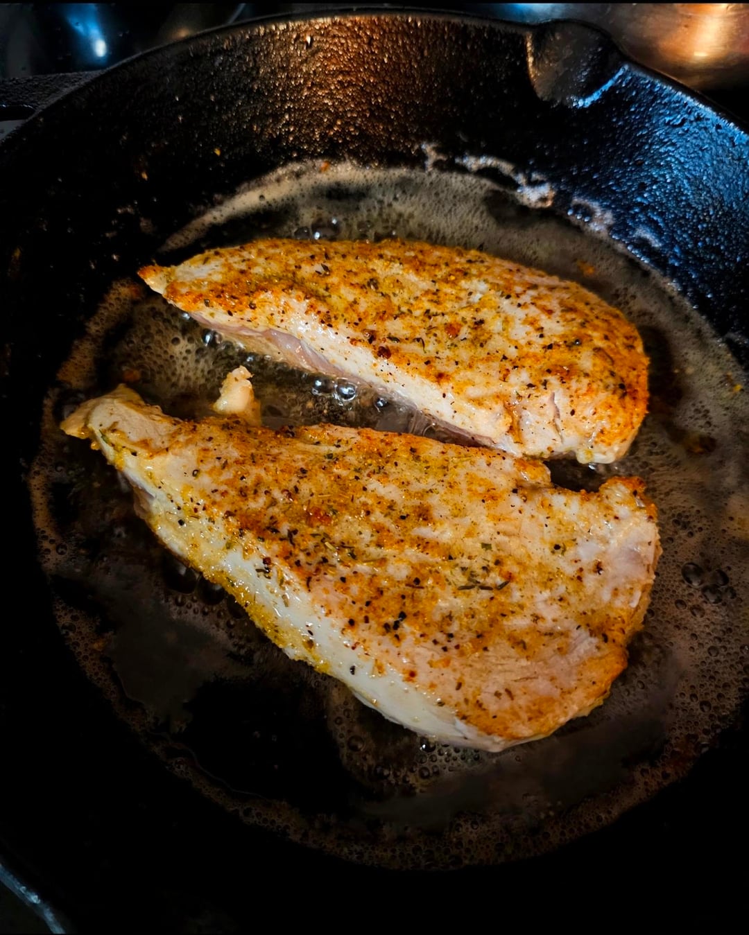 Crisp up some chicken skin then melt some bacon fat in that pan to cook the chicken. Season with SPPOG and lightly brown it then cover and simmer with some broth until cooked through.
