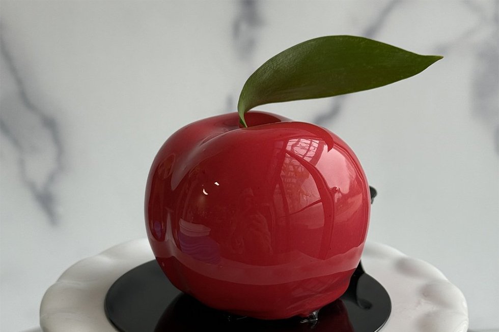 On a chilly December morning, the line at Sophia Marie Patisserie snakes through the shopping center from the front of the bakery at 241 E. Hundred Road in Chester. Bundled in coats and scarves, eager patrons are seeking one surprise in particular: trompe l’oeil pastries, the hyperrealistic desserts designed to mimic real fruits. From glossy red apples to golden mangoes, the labor-intensive creations have become a daily draw. Owner and baker Stacia Palomeque says, “They have increased our traffic over 300%. People are arriving an hour before we open, and we’ve been selling out. We sold 80 Christmas trompe l’oeil boxes within two hours.”