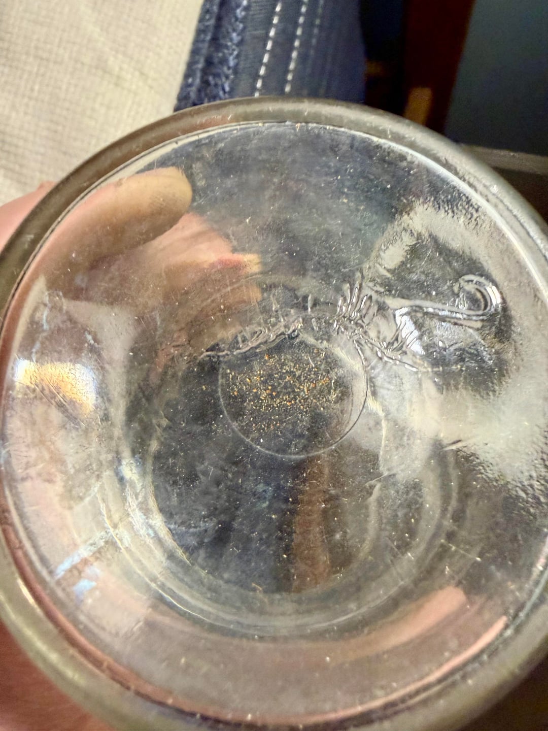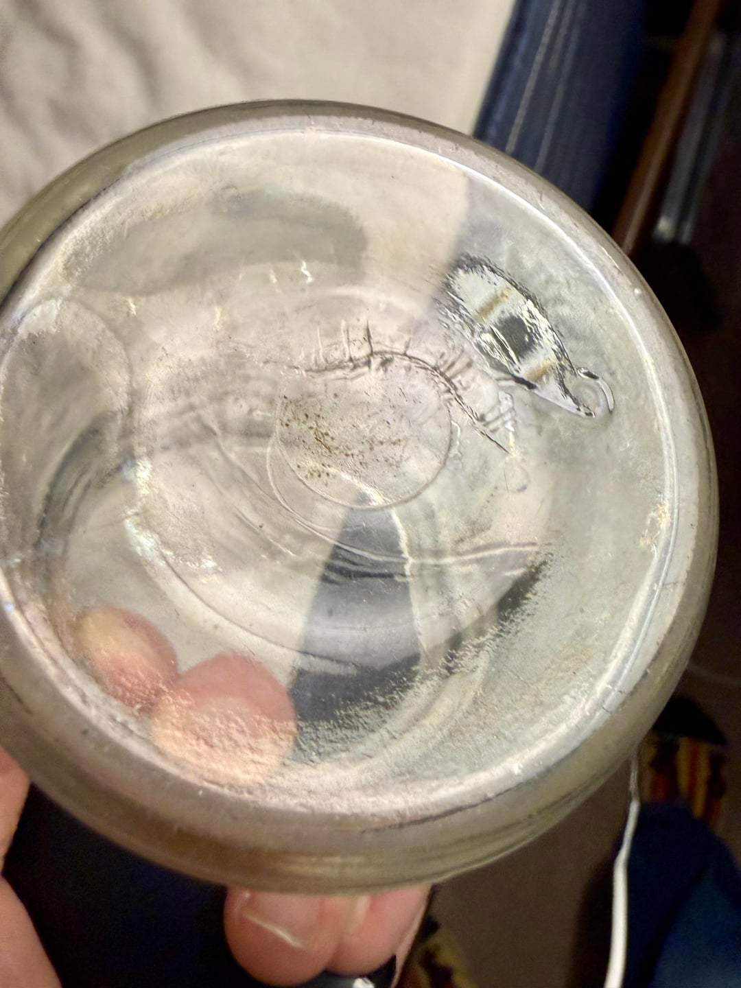 I dont know if it’s a camera glare or if the jar is supposed to be like that – but i feel like that jar has a manufacturing defect. It almost looks like a bubble in the glass under the “2” and the seam along the bottom doesn’t look like commercial glass jars.