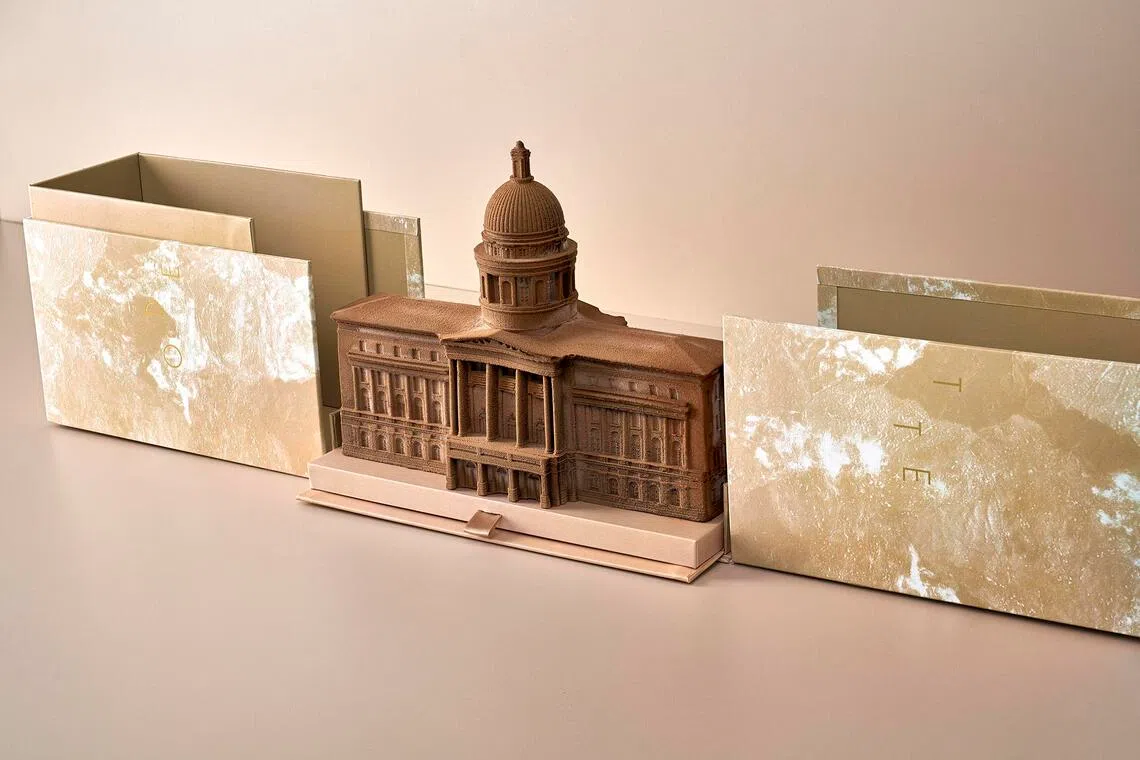 Odette’s stunning cake is modelled after the National Gallery Singapore, which is home to the restaurant.