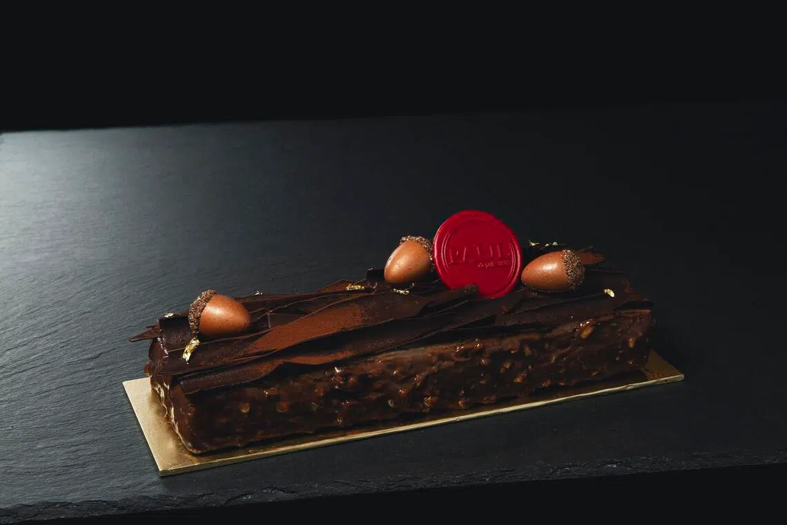 For a fun number, the Banana-Rama (from $40) features a peanut sponge cake, caramelised banana and a crunchy chocolate-hazelnut coating. It is also part of Paul’s festive sets, priced from $169.