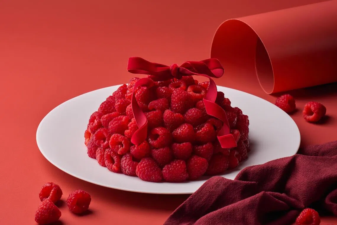 Adorned with fresh Australian summer raspberries, Tarte by Cheryl Koh patisserie’s Framboisier cake ($98, for four to six people) features layers of vanilla sponge cake, creme mousseline and raspberry jam.