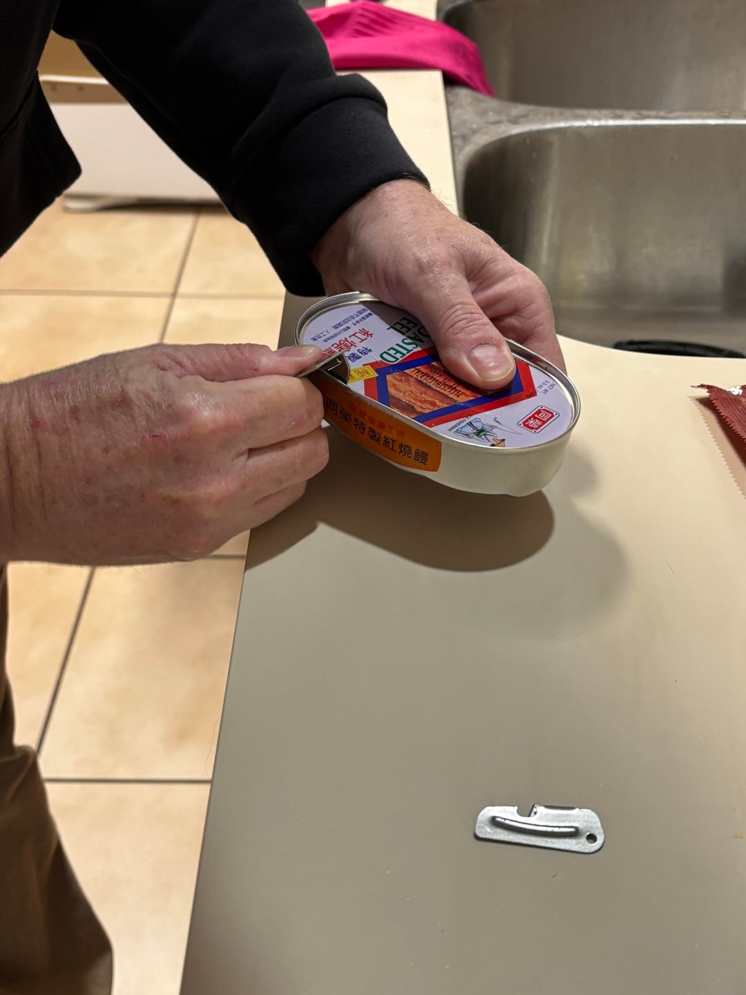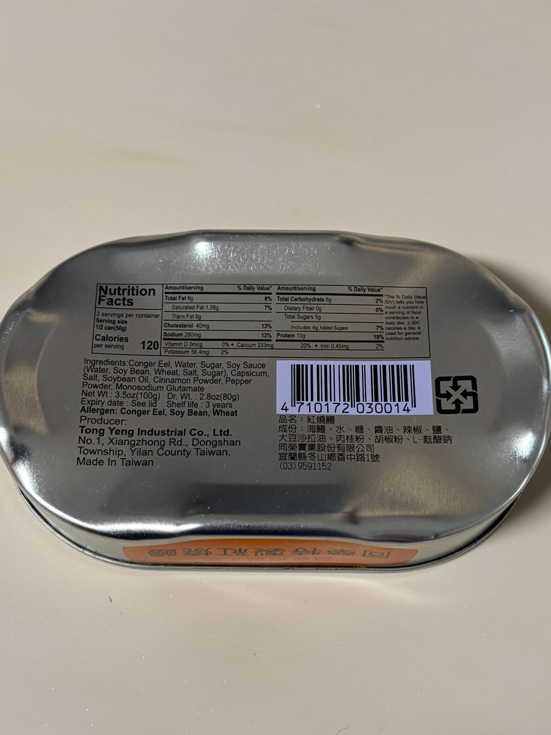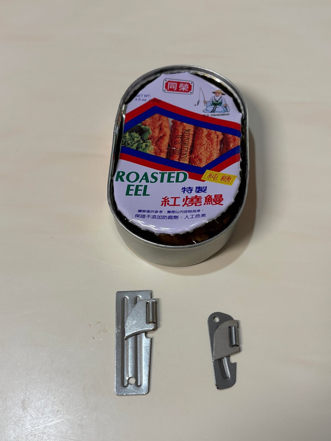 I love this tin of OF roasted eel, even though I know my electric can opener can’t handle the shape, so P-38 is required.