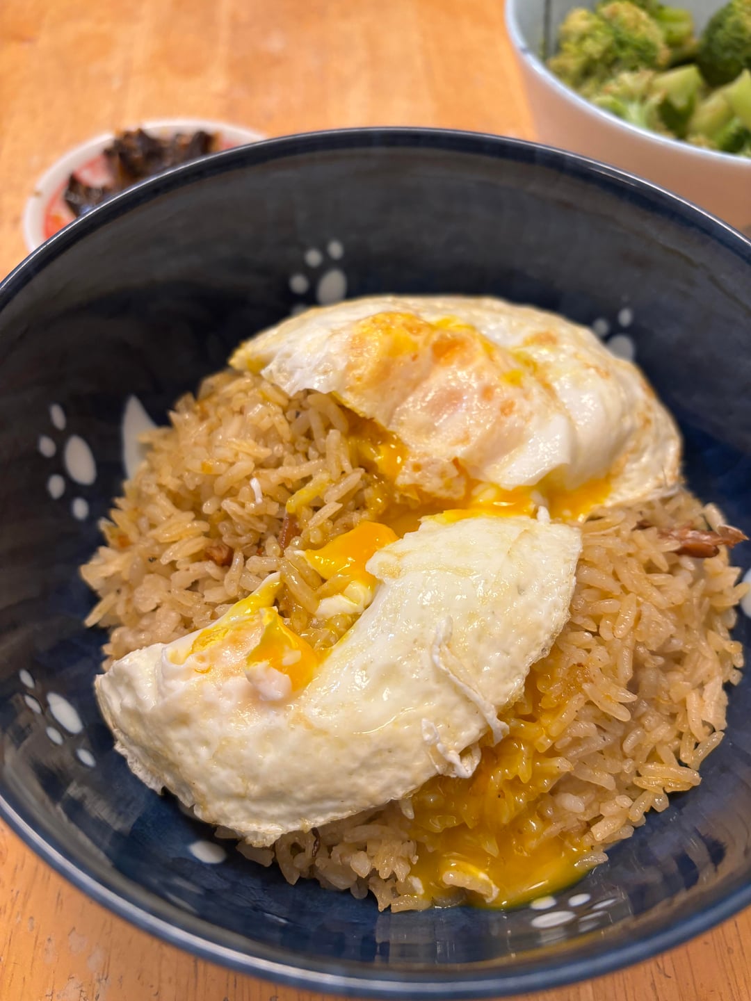 What I live best about eel rice is you can add almost anything to it and it will be delicious! It’s perfect for using up those bits and bobs in the fridge – in this case, bamboo shoots and some wood ears. I thought about it adding the broccoli too, but decided I’d make it a side dish instead.