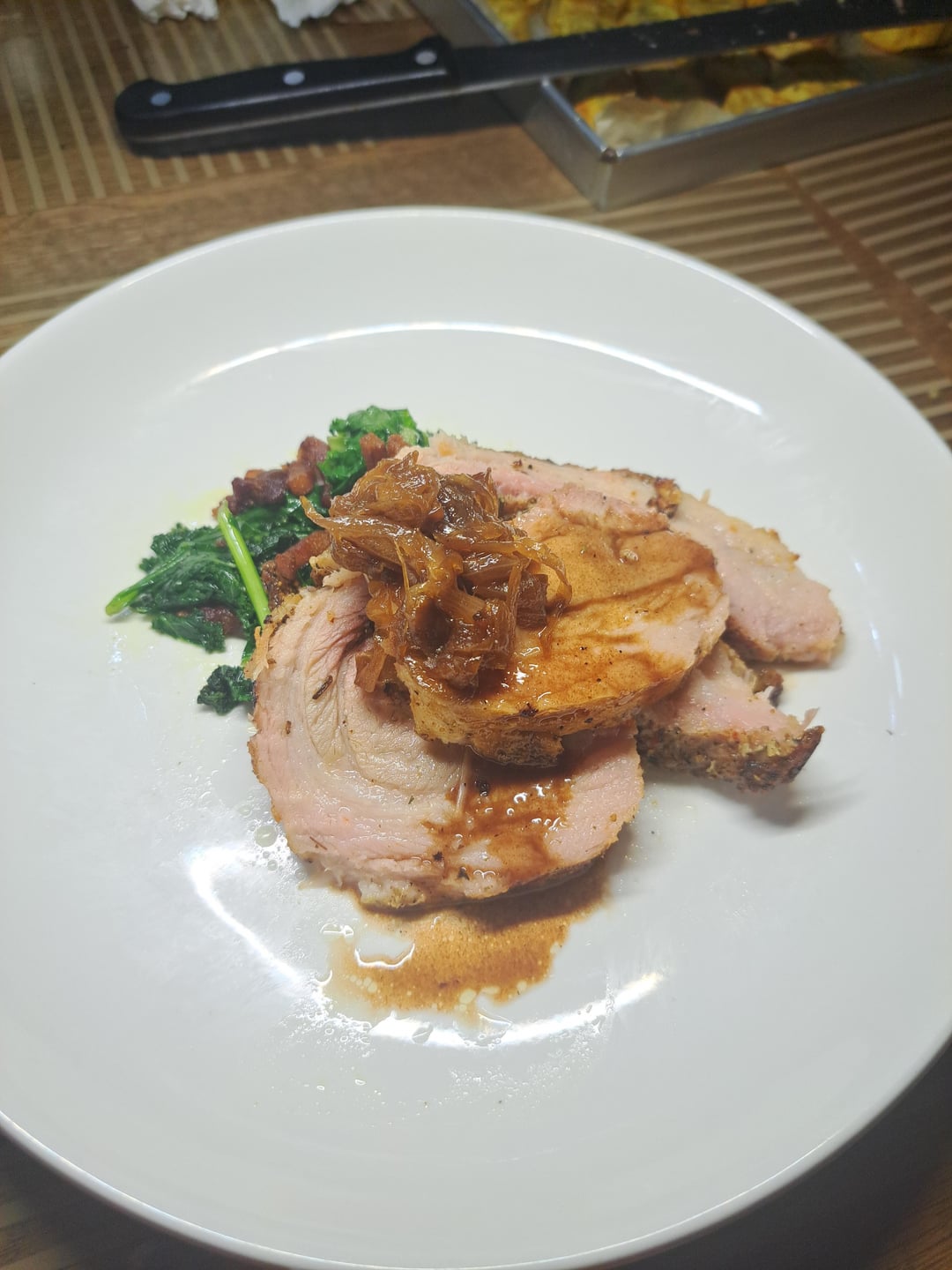 im not a pro, but how did i do? looking for constructive advice! this is a slow-roasted duroc pork belly with a red wine balsamic jus, caramelised onion, served on a bed of sauteed kale with crispy guanciale by Humiliated-Guava729 1 Comment Jack066 3 days ago Looks tasty but this isn’t really the sub for this type of home cooked meal plating.