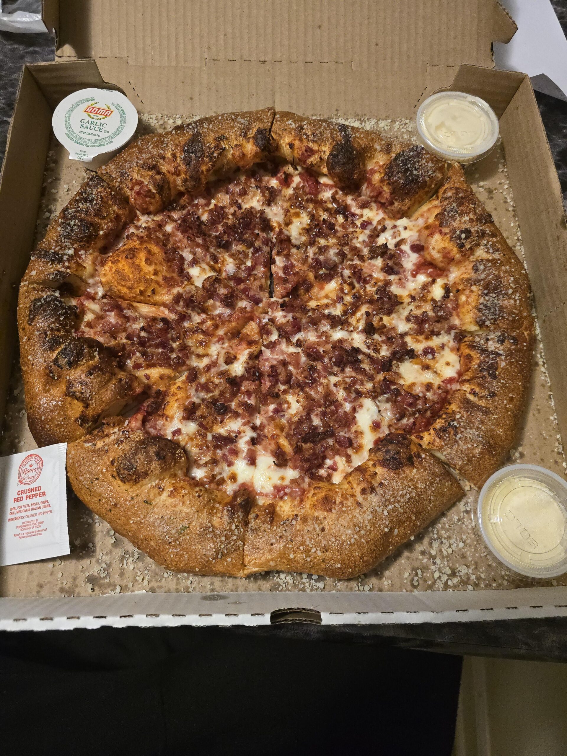 Stuffed crust, bacon, well done. by SilverMeTimbers69 4 Comments _VibeWithHer_ 22 hours ago  samsquanchforhire 21 hours ago Omg why do I live where I live. Nothing even close. FramingHips 20 hours ago Beautiful wood_mountain 18 hours ago Looks delicious