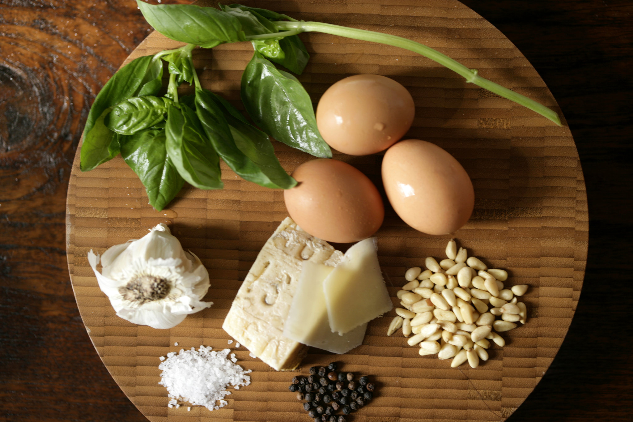 - Remove pan from heat and drizzle pesto on eggs. Off heat, give eggs one more gentle stir — enough to finish cooking them and to distribute pesto in dark green streaks. Scatter ricotta on eggs and drizzle with more pesto if desired. Serve at once.