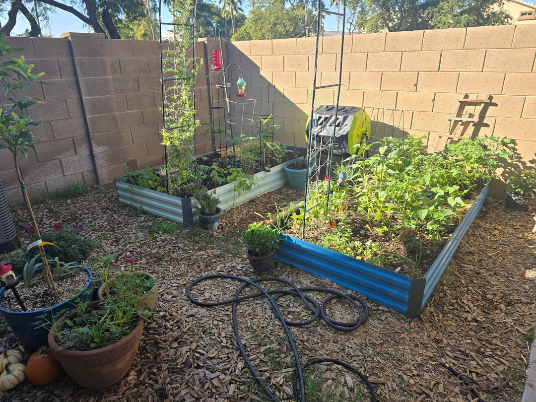 Saw a post the other day about the new posts dropping. Here is my offering to those in these cold times. Harvesting green beans, radishes, lettuce, several herbs. We got a record amount of rain and had to pull my roselle hibiscus due to a fungal issue. Thankfully harvested enough for a cranberry hibiscus sauce for Thanksgiving. Picture 4 is from Oct 31st and the first 3 pictures are from yesterday. Potatoes are exploding in the back right color of the blue bed.