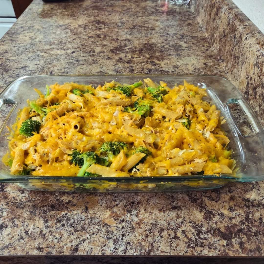 Dinners: whole wheat penne pasta, shredded cheddar and sharp cheddar cheeses, butter, steamed broccoli, sautéed shallots, slow cooked and shredded Buffalo Ranch chicken breasts. Seasoned with salt, black pepper and mustard powder.