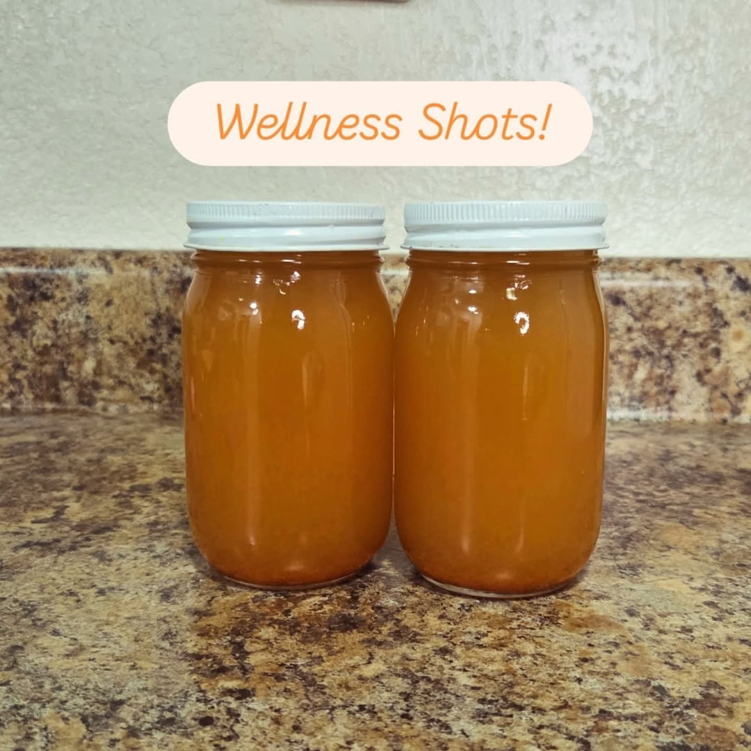Wellness Shots: two 16 Oz jars, 2 sliced ginger roots, 2 lemons, 3 Oz apple cider vinegar, 2 tsp cayenne powder, water, 2 Tbsp stevia powder.
