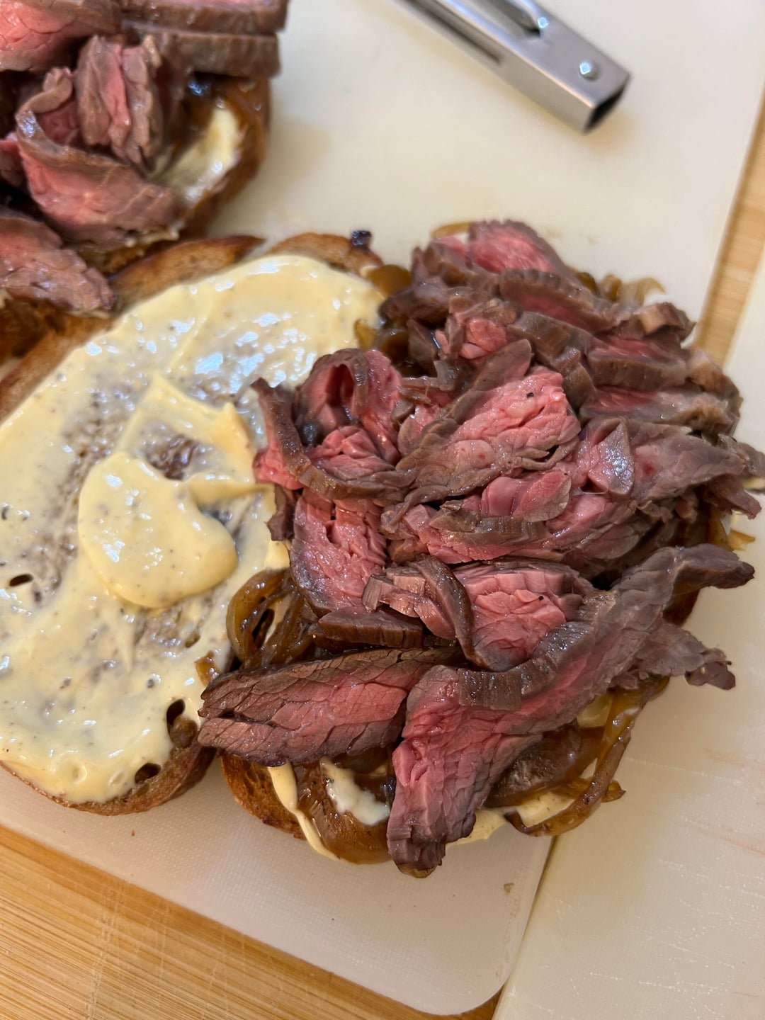 Skirt steak, mushrooms, dijon sauce, caramellised onions, jalapenos and sourdough.by mymillionthburner 10 Comments Significant_Fee7159 1 week ago This honestly looks a little gross… levelupimprovement 1 week ago Hell yeah Mr_B_Gone 1 week ago I like saucy sandwiches but that is a lot of sauce. Otherwise looks pretty good Particular-Skirt963 1 week ago Slayed that PHUKYOOPINION 1 week ago You need your pan hotter when you sear your steak Longjumping_Leg_93 1 week ago Looking really good Neptune7924 1 week ago Fire. Massive-Passenger855 1 week ago I should call her FalkorDropTrooper 1 week ago  Automatic-Flan1138 1 week ago