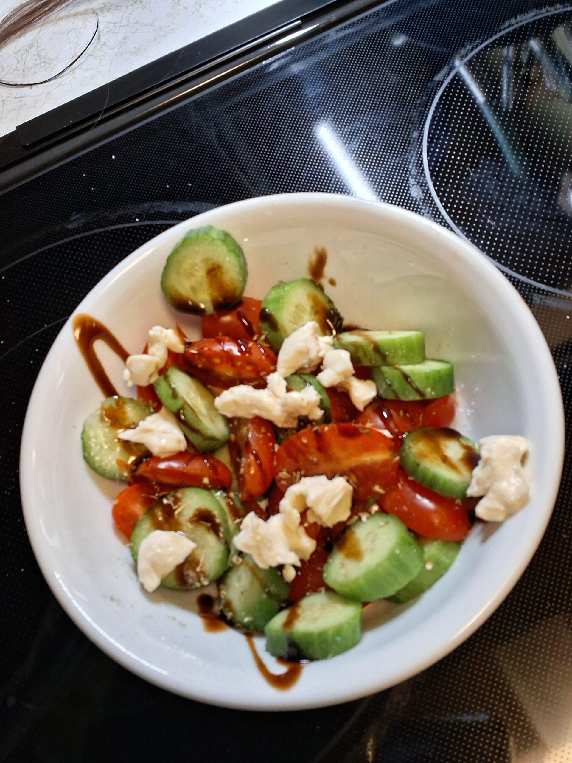 I had to throw together a snack to keep me from eating all my toddlers veggie straws. Cucumber, tomato, salt and pepper, oregano, balsamic glaze, laughing cow light cheese.by Melissa0923 2 Comments Fuzzy_Welcome8348 1 month ago Looks delightful! 😊 dordokamaisu 1 month ago 😀😀☺️