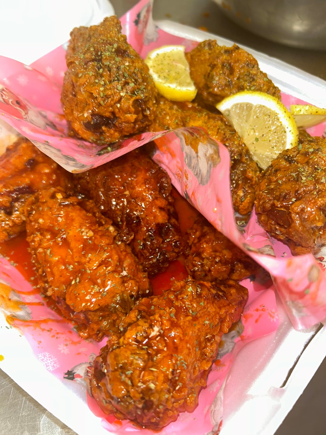 Here are some of my boneless wings, tenders, and bone-in wings I do at my ghost kitchen! We have so many wing flavors including Pineapple Teriyaki, Garlic Parmesan, Sweet & Spicy Lemon Pepper, Gold Fever, Buffalo Hot Honey, Lemon Pepper, Honey BBQ, Hot Buffalo, and so many more… we don’t have a storefront, as we are a ghost kitchen so please preorder before coming by. Located at 1427 Elmira Street Aurora, CO 80010. Open Fridays & Sundays.