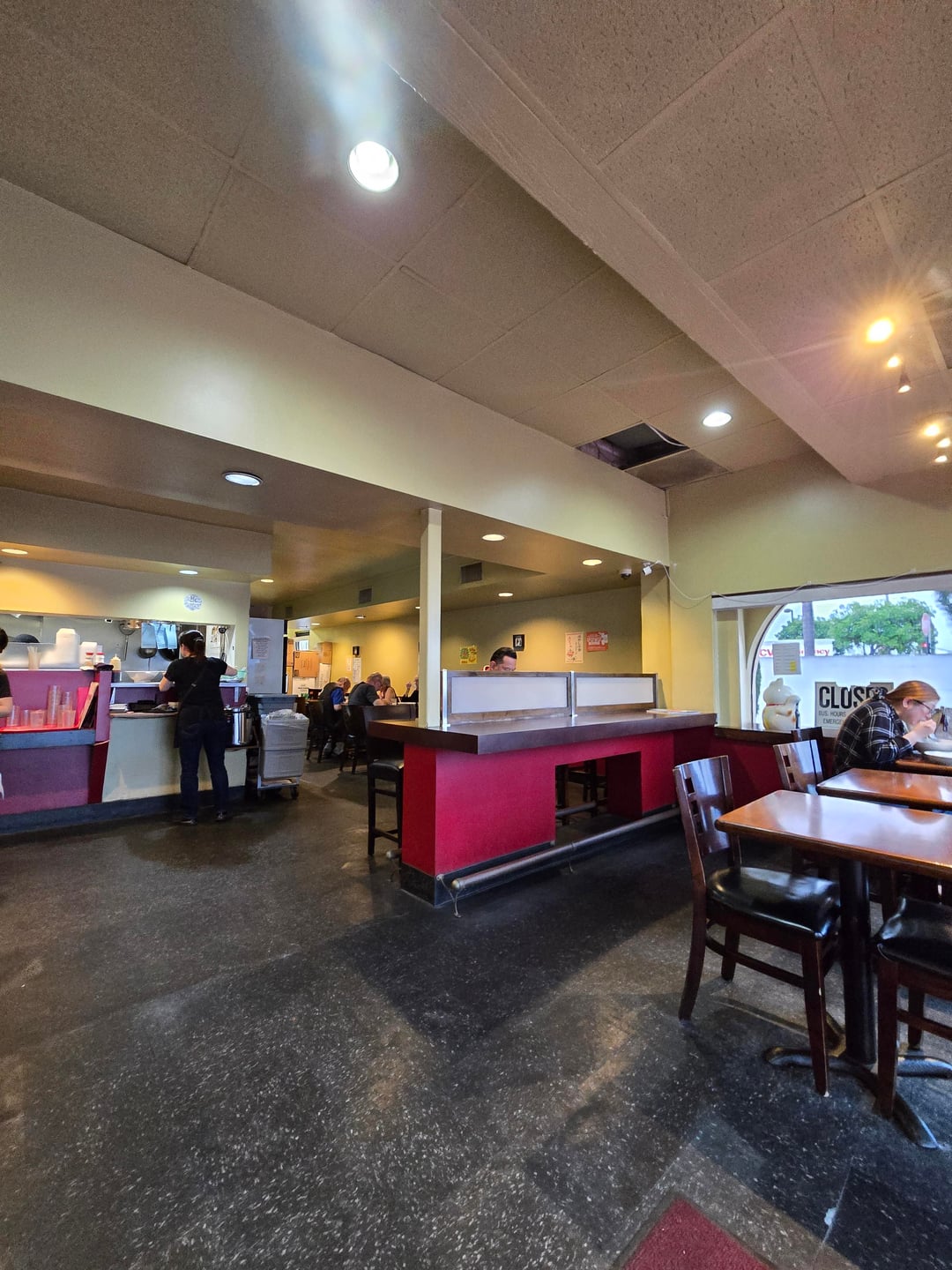 Ramen shop inside a former 70s Taco Bell that makes its own noodles in-house. Specialty of the house is probably the umani ramen, which comes with veggies and pork stir fried in a thick sauce largely flavored with oyster sauce. Very warm and filling for rainy days like this!