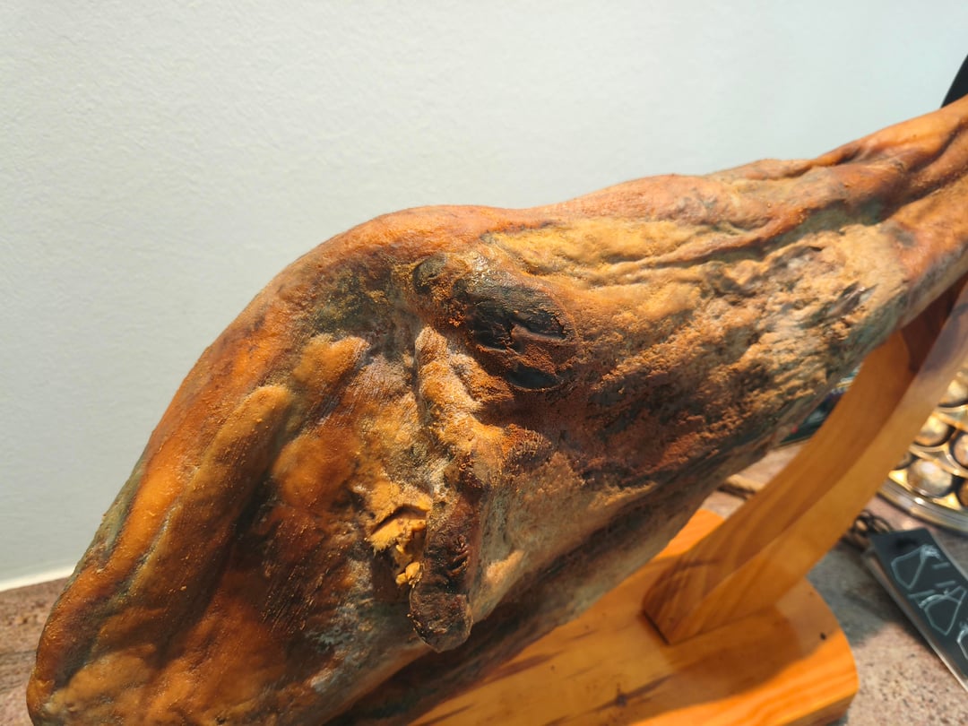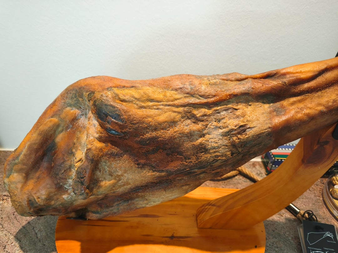 It is iberico ham (better than serrano), which is generally 3-4 years cured already. It may be very hard to slice.