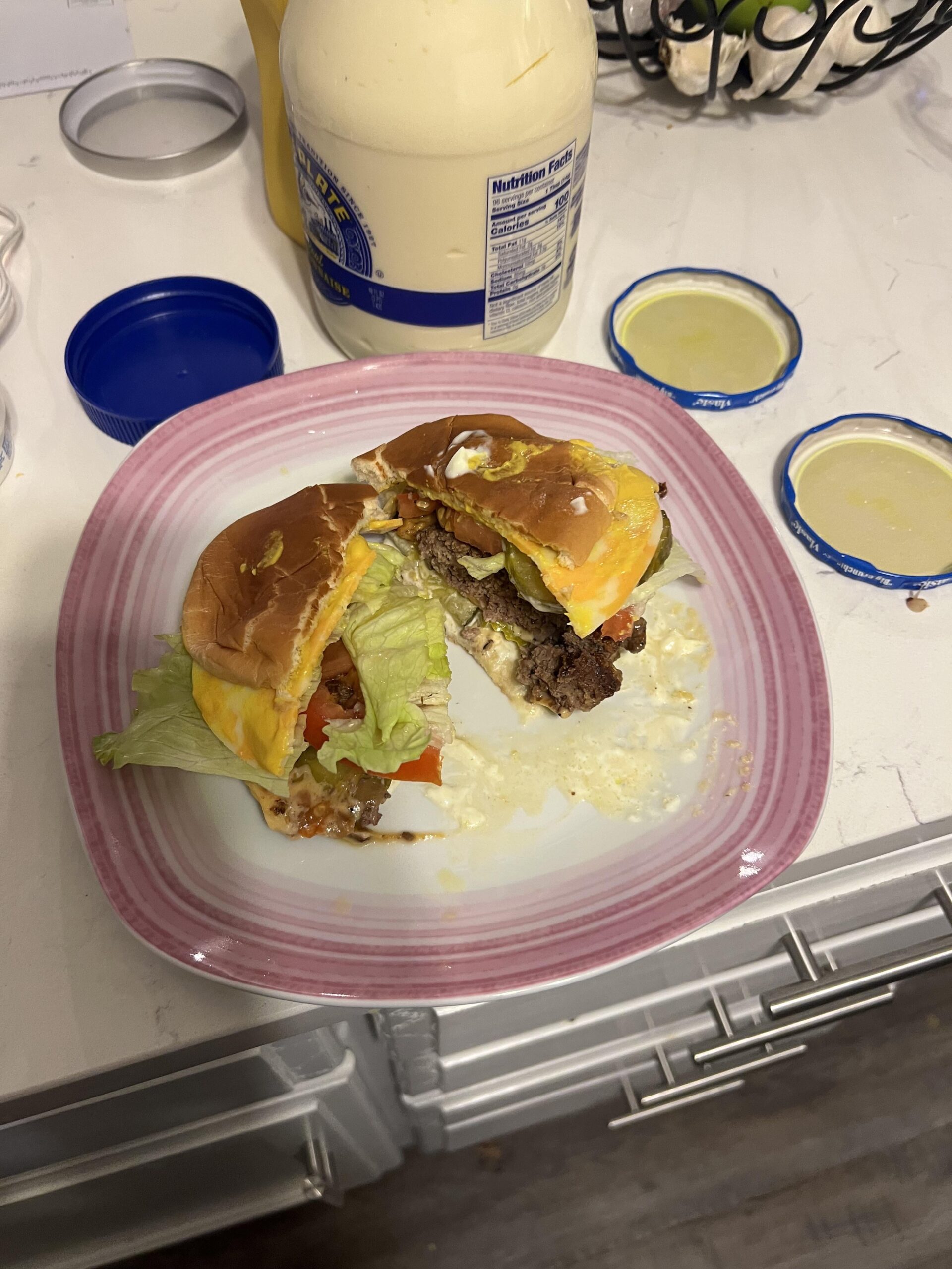 I like to dip my burger in ketchup and mayo. I don’t put it on the burger, but on the plate. Much less messy.
