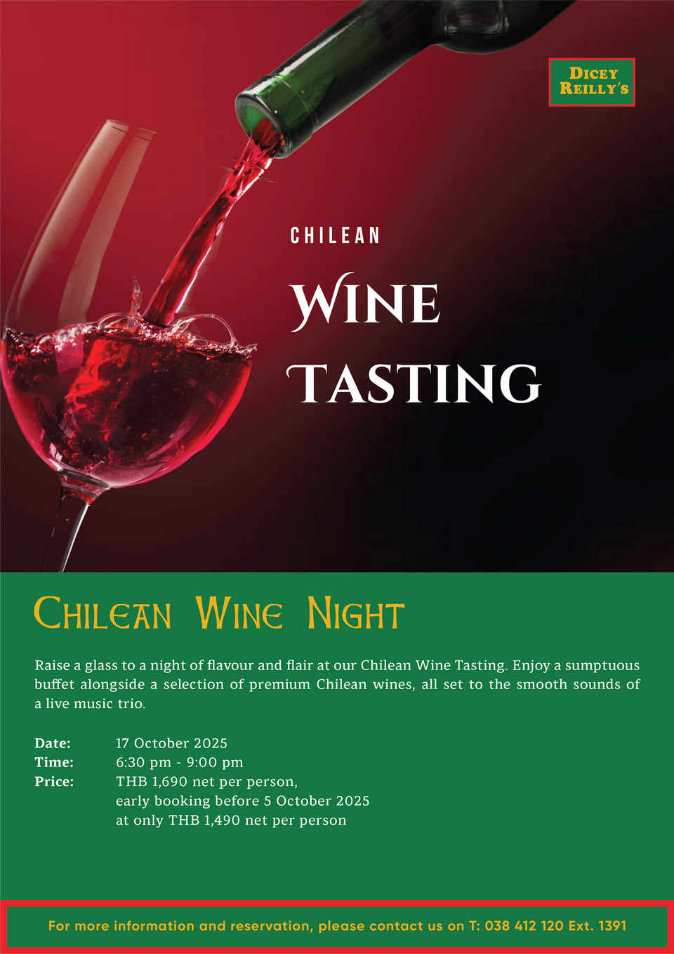 PATTAYA, Thailand – Raise your glass and savour the spirit of Chile at Dicey Reilly’s as we host a special Chilean Wine Tasting Night on Friday, 17 October 2025.