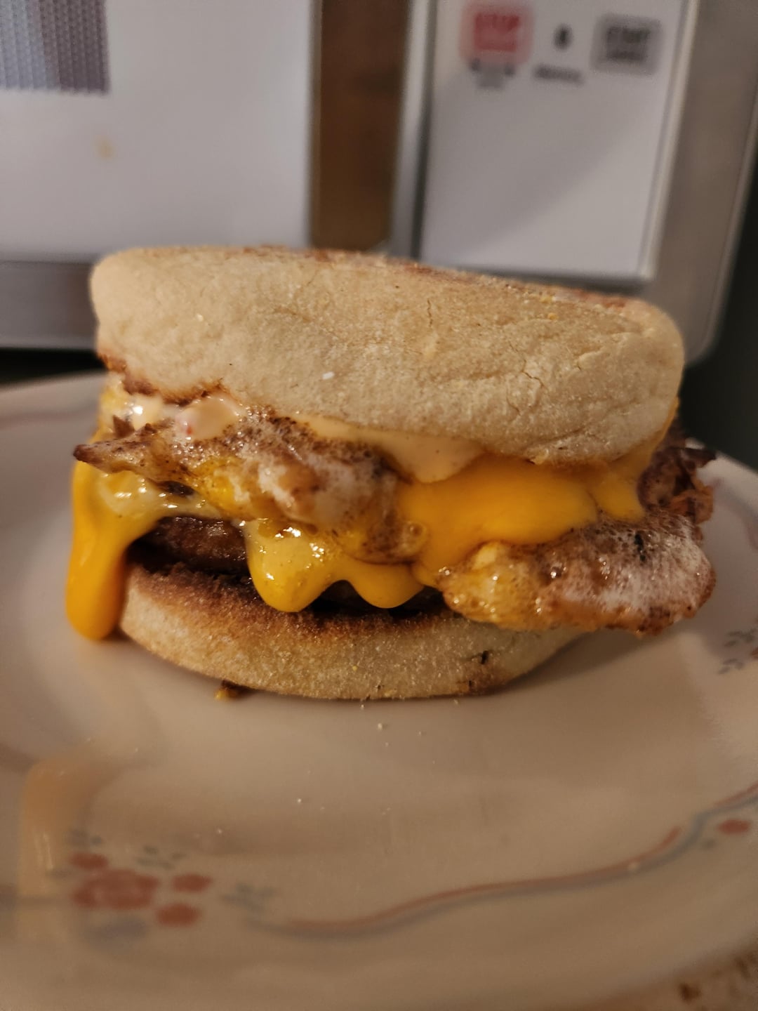 2/ sausage egg cheddar English muffin (with breakfast sauce)