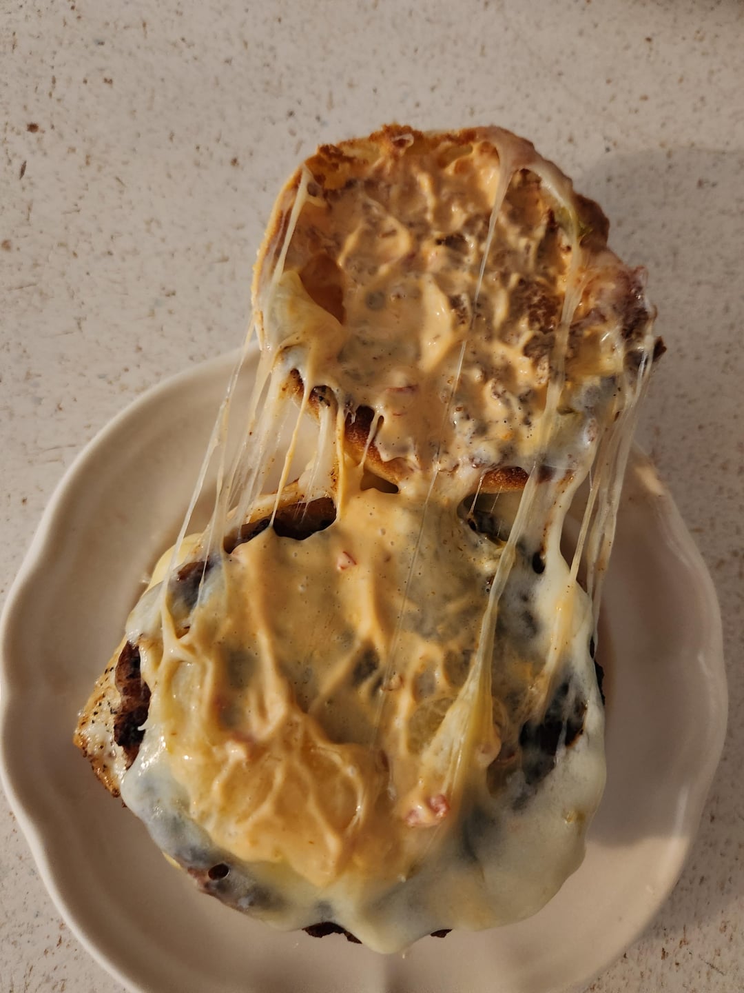Guys. When I’m having cheat day from my goddamn diet, I love a sausage, egg, wilted spinach, and cheese on sourdough. The secret is a thin layer of cream cheese on each slice of bread. I know nobody cares, but this goddamn diet has replaced sex dreams with dirty food dreams. Thank you for your time.