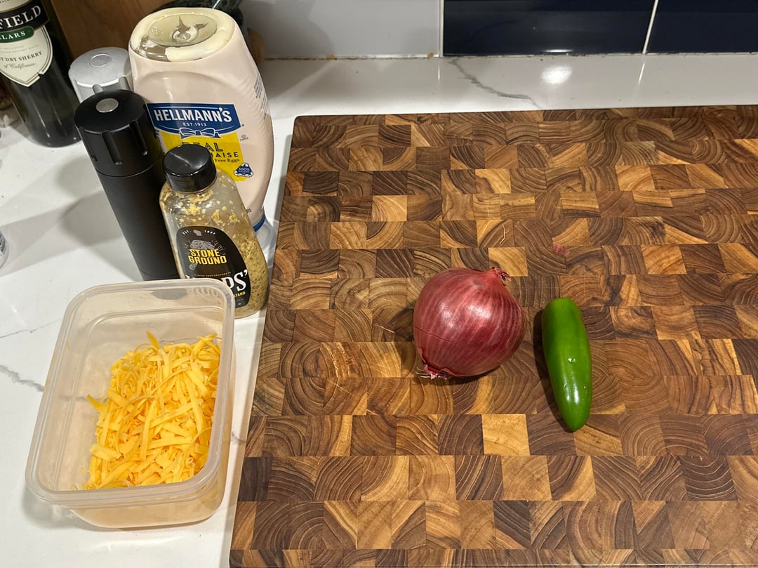 Touch of sugar and some grated carrot. Grate the carrot after the cheese so the carrot kind scrubs the grater and it’s easier to wash.