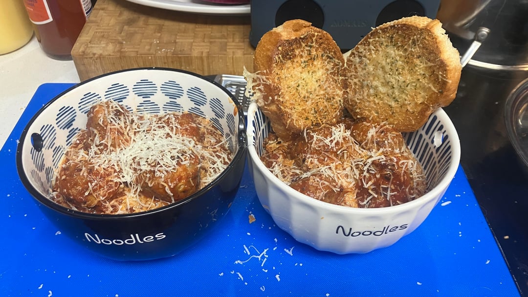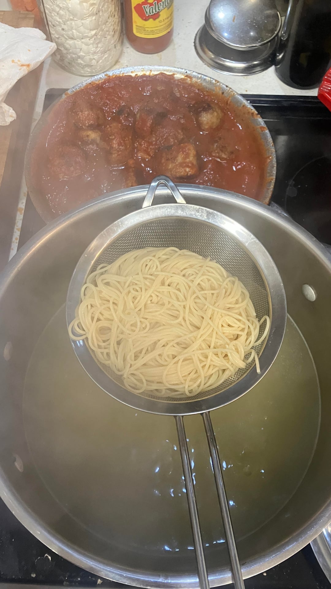 Sauce and meatballs weee store bought, yet the meatballs were fresh. It won’t be the last time I get those. A pack of both spicy and regular.