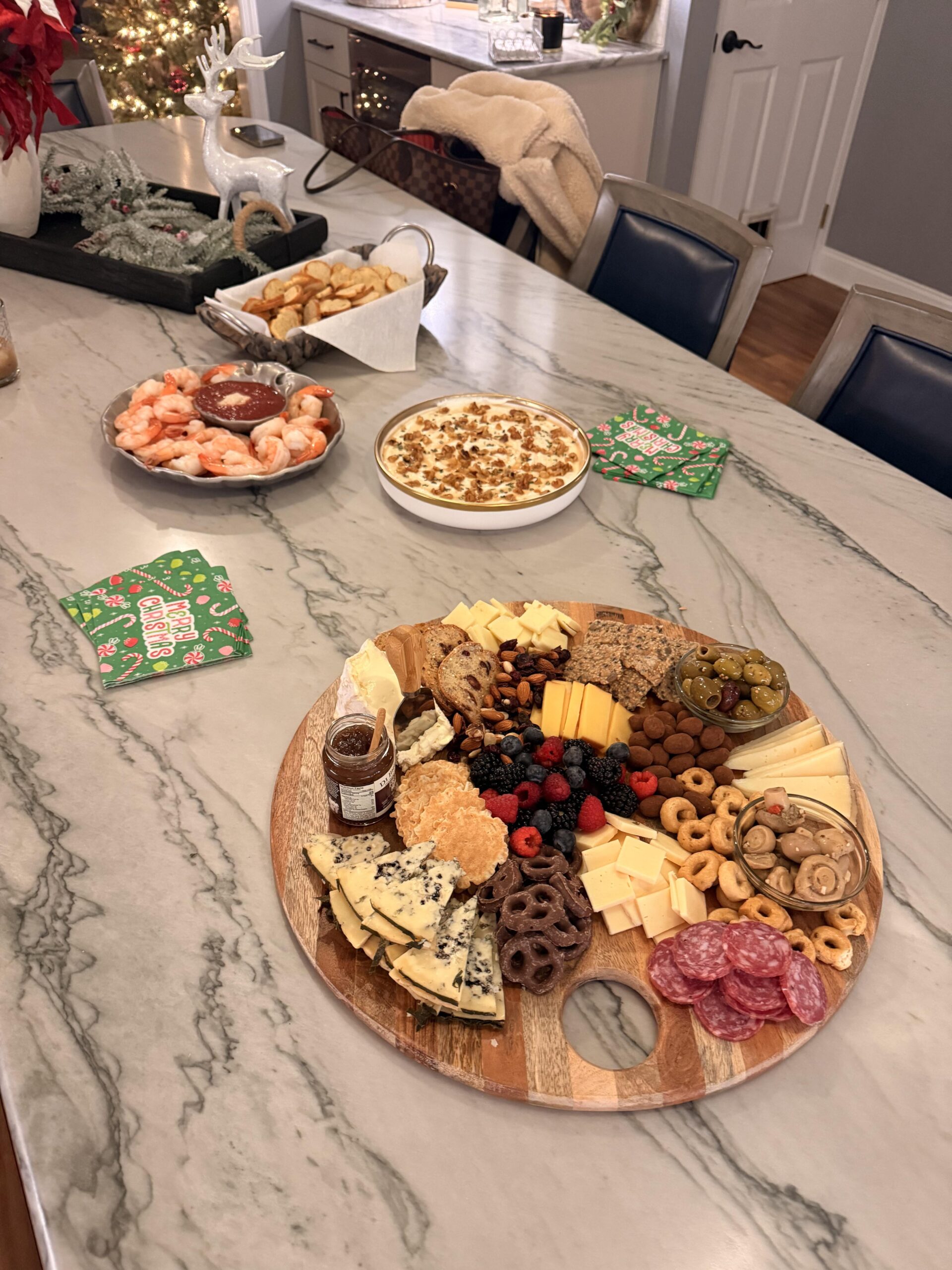 Looks very festive. I love the black tray decorations in the background. Very pretty. What are the little circles things by the mushrooms?
