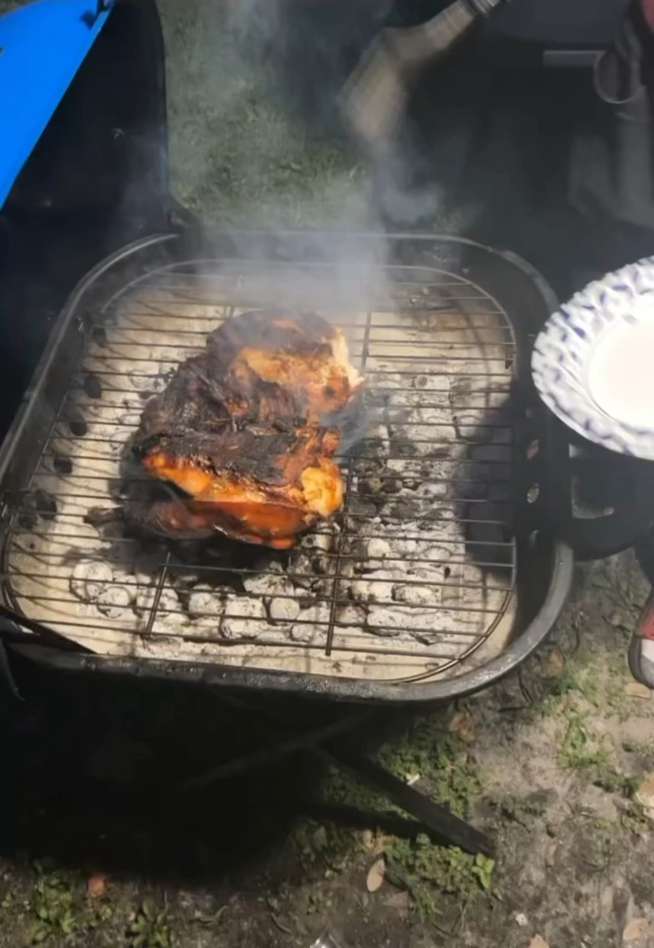 It might have been fine if the charcoal was on one side and the turkey was placed on the other side.