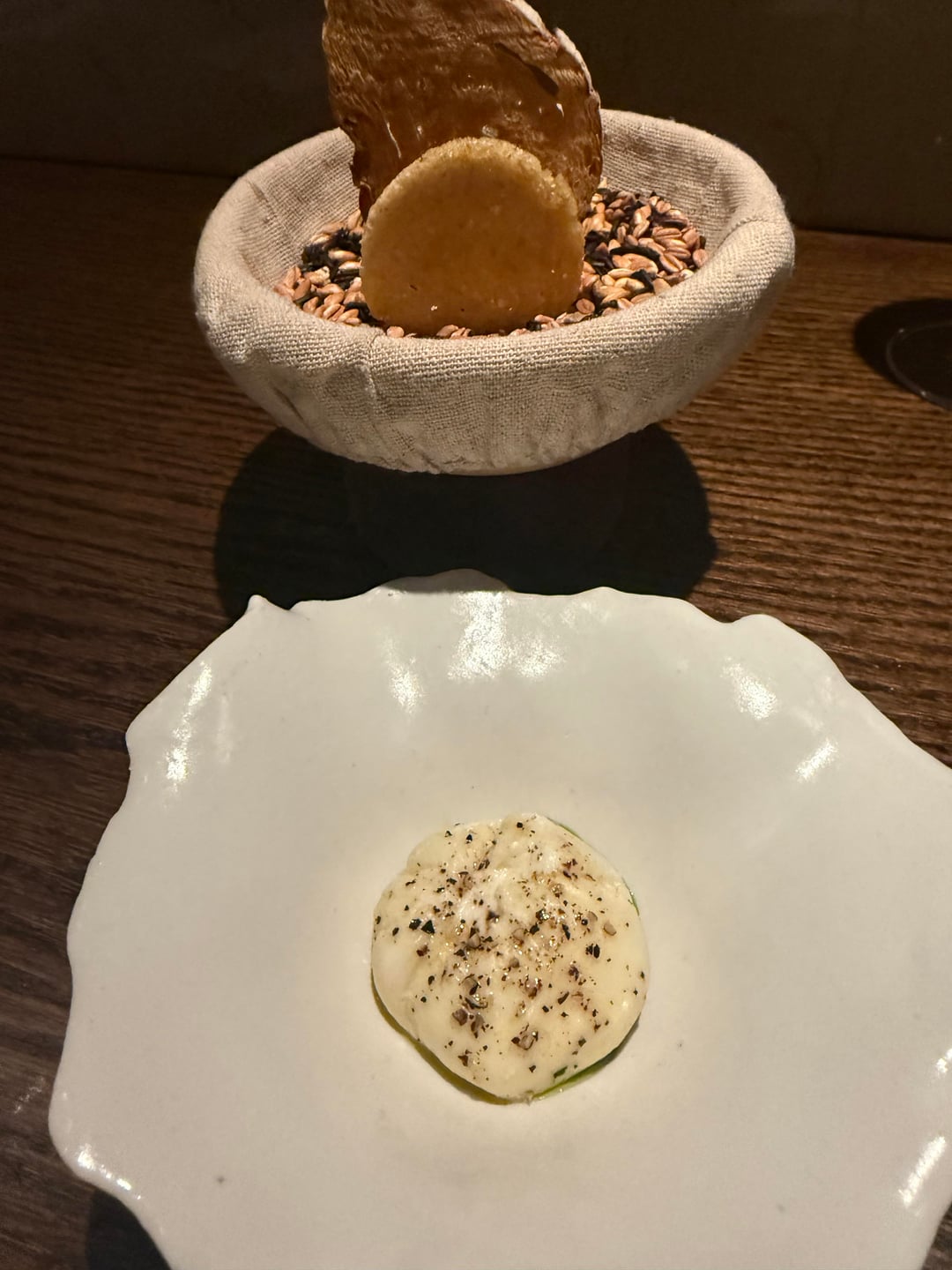 Wild Hokkaido Scallop: sambal sauce nantua | yeasted crumpet