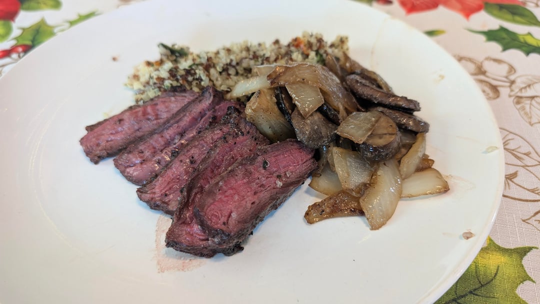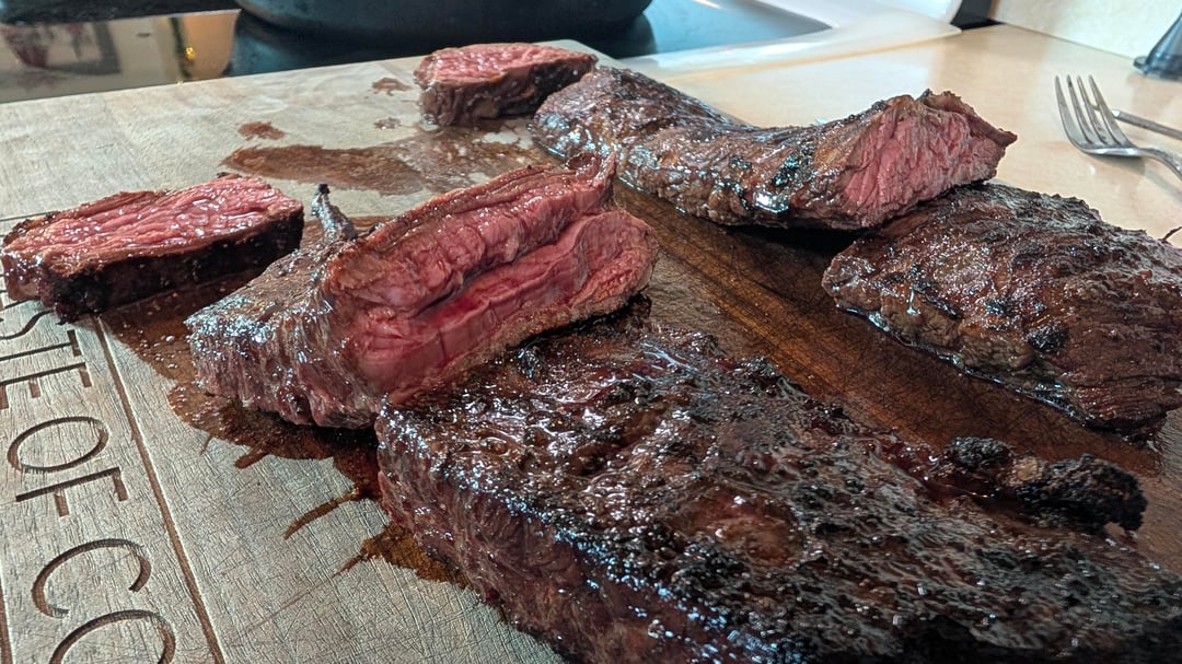 Decide to mix it up and try to do a marinade for skirt steak. Salt pepper garlic had better crust and beefy flavor was more apparent.