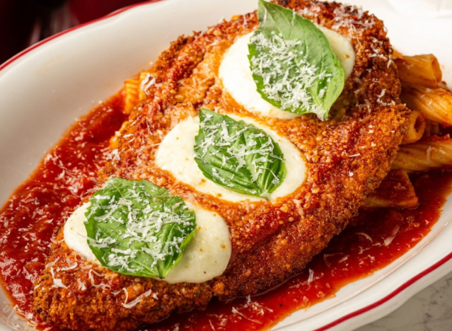 Chicken parm is one of those staple Italian-American foods that is simply, satisfying, and always comforting. The meal itself is as simple as it gets—chicken breasts covered in marinara sauce, mozzarella and provolone. Because it’s such a simple dish, every ingredient has to shine, from the quality of the chicken itself to the savory taste of the sauce and seasoning. So where can diners go to get the best chicken parm? Here are five chain restaurants where guests love this menu item.