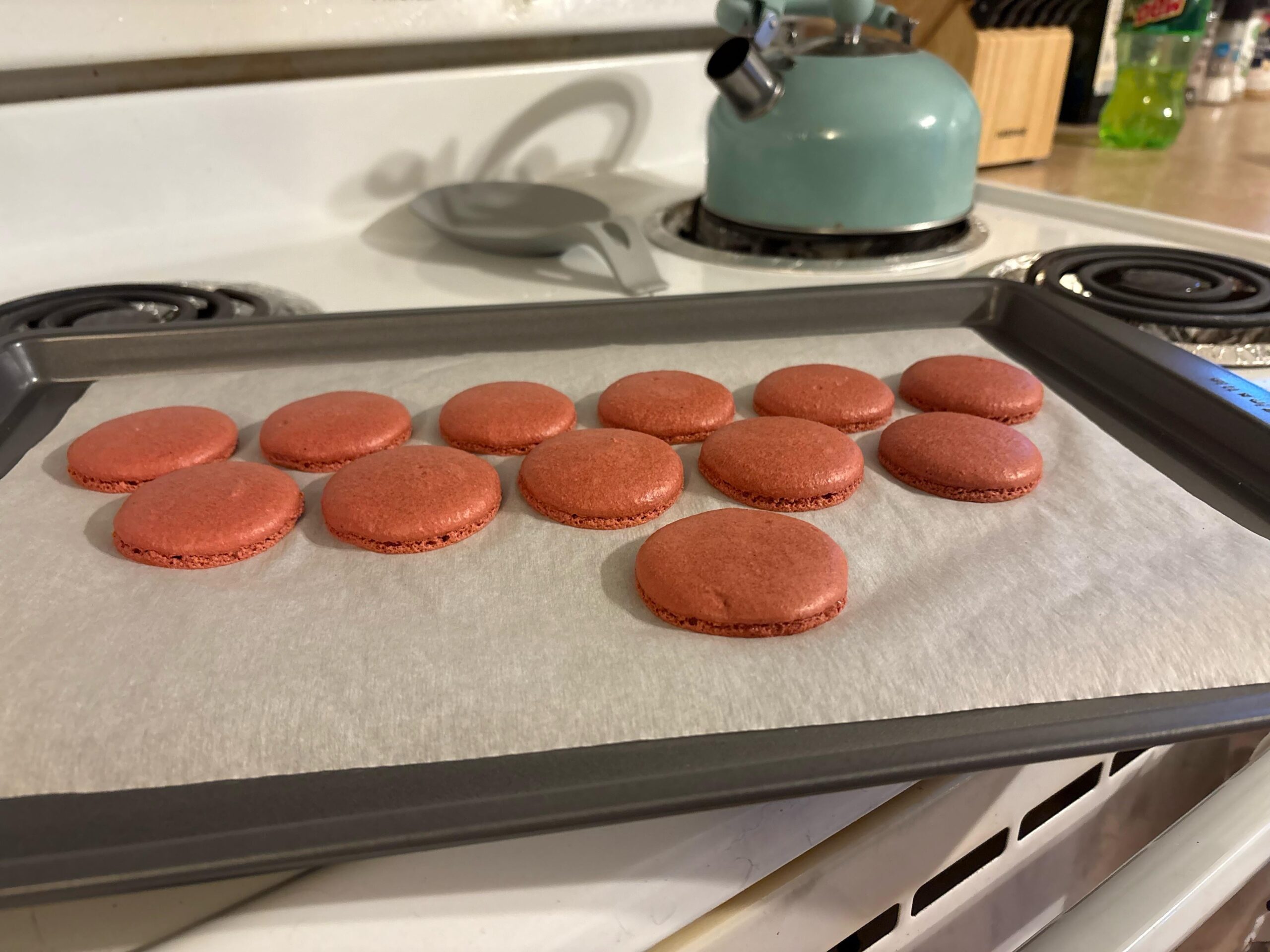 After my failed batch of chocolate macarons last night and failed regular macarons earlier this week I finally prevail! They’re a bit bumpy but I used a cheap almond flour from Aldi and it’s seems to have worked well!