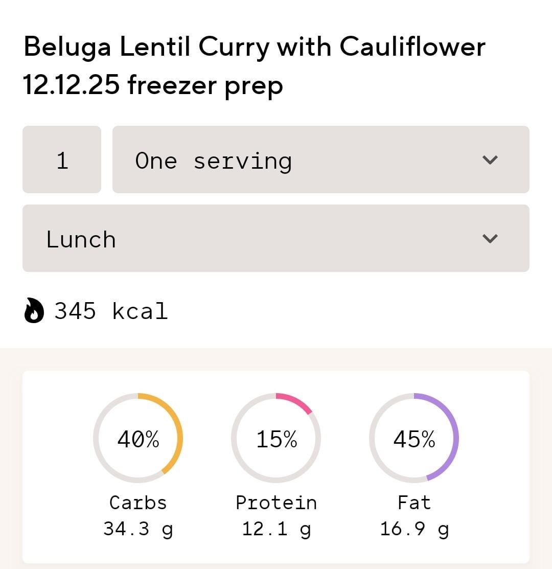 Lunch: Lentil Coconut Curry with potatoes and cauliflower (this was specially tracked by me so no ingredients, but if you want the info for the whole dish I'll reply in the comments)