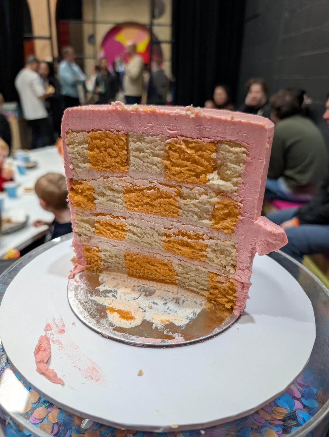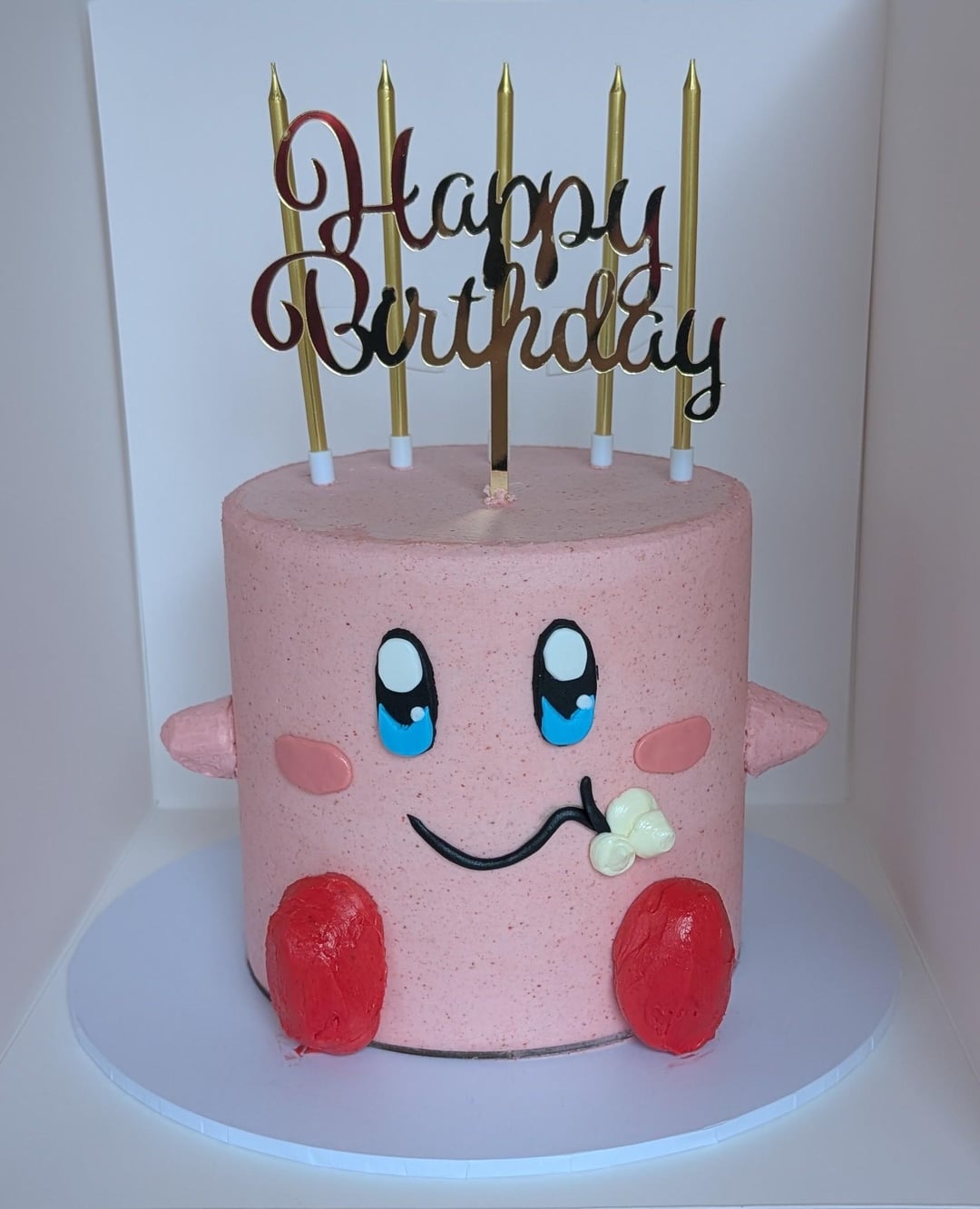 SMBC and checkerboard white chocolate mud cake in Waddle Dee colours, with freeze dried strawberries in the buttercream for colour and flavour. 🙂