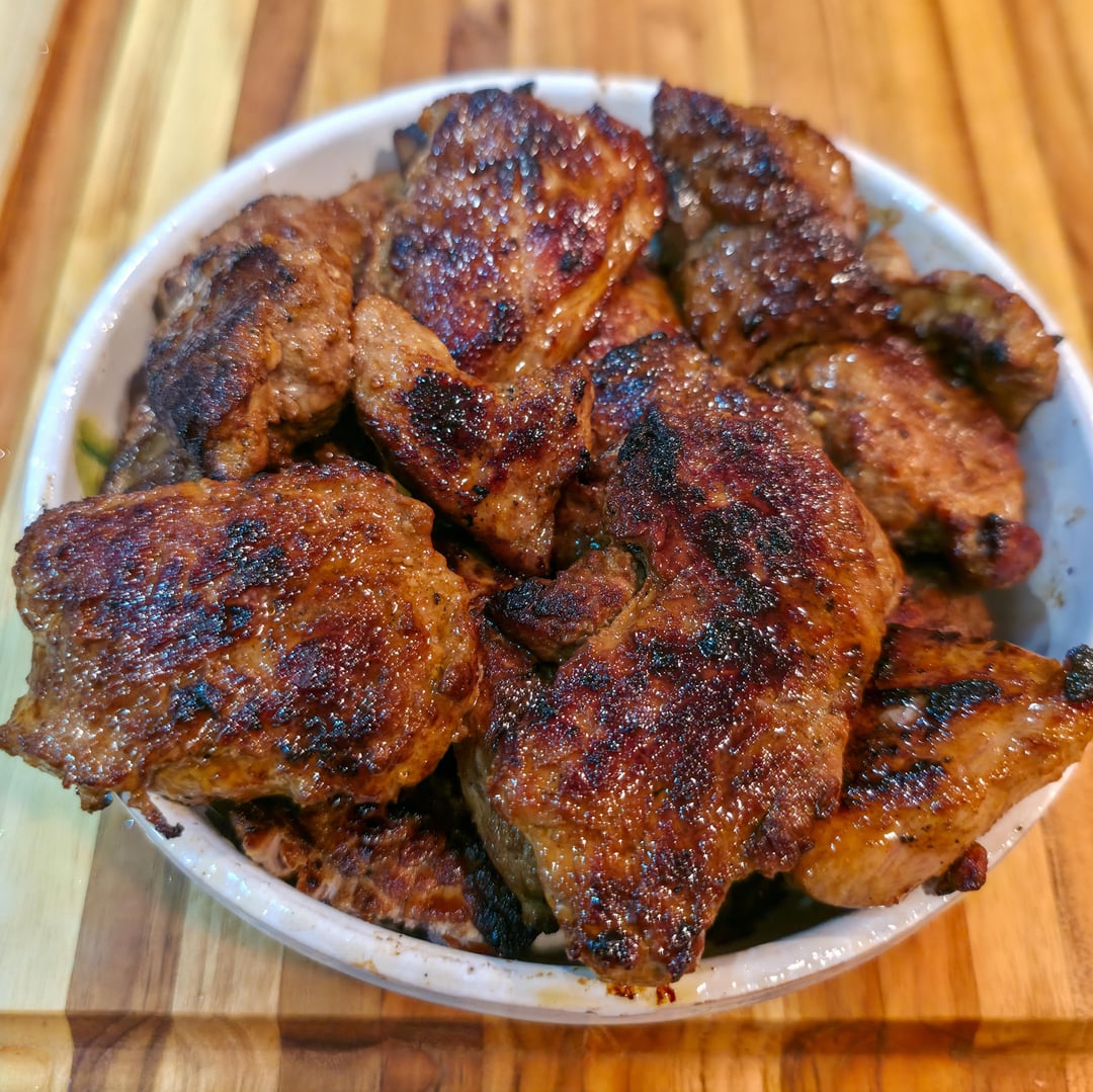 – Trim fat and silver skin from meat. – Cut into equally sized chunks. Roughly 1-2 inch thick. – Pound cuts down so they flatten out. Aim for consistent thickness. – Marinate cuts for 3-6 hours. *Don’t over marinate due to lime juice. – Preheat large cast iron to medium/high heat. Coat bottom of pan in thin layer of high smoke point oil. – Sear each piece of meat for 2-3 minutes per side, or until internal temp reaches 140F. – Put any remaining marinade in small sauce pan and cook until it is reduced slightly. *Make sure it’s cooked long enough to kill any raw pork bacteria.