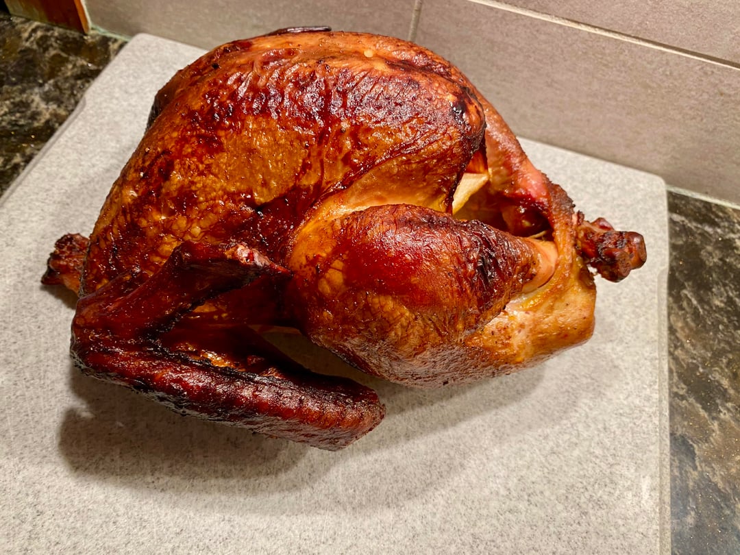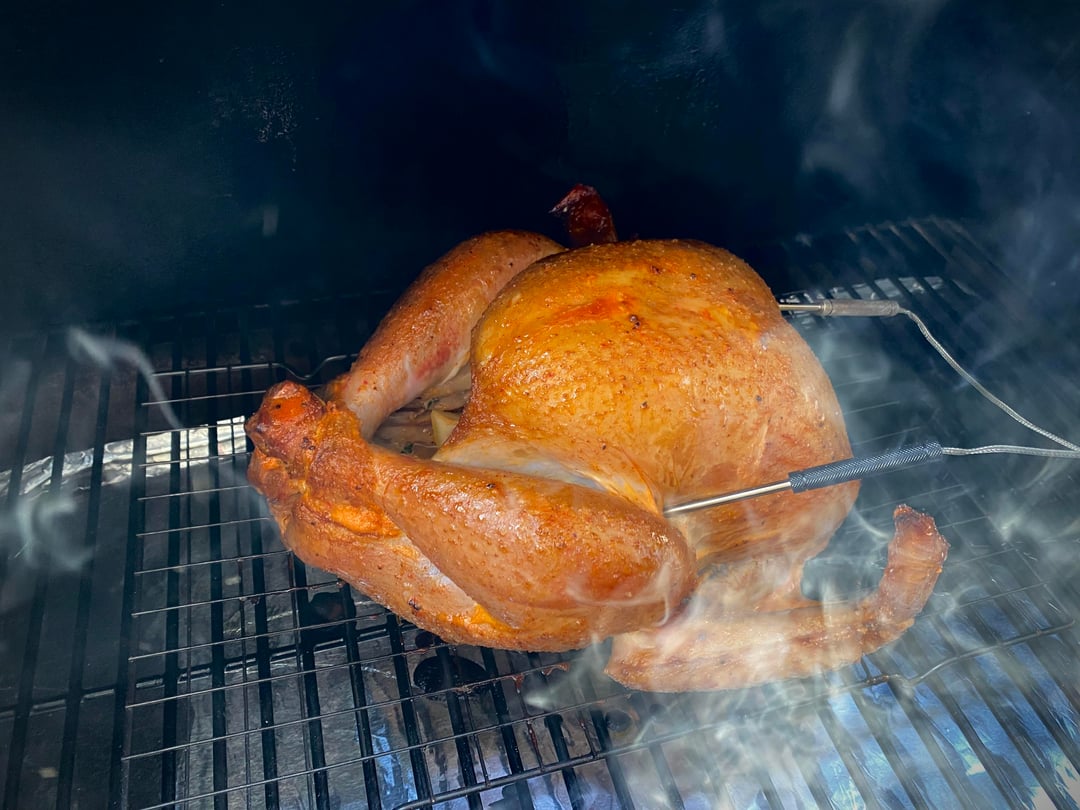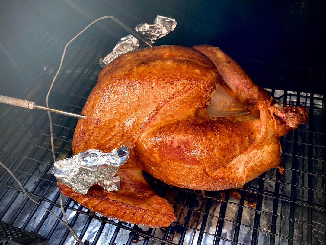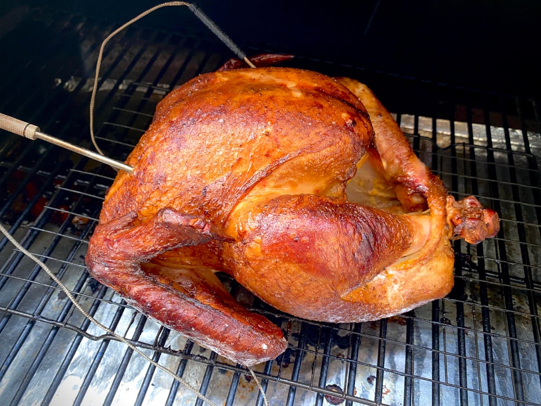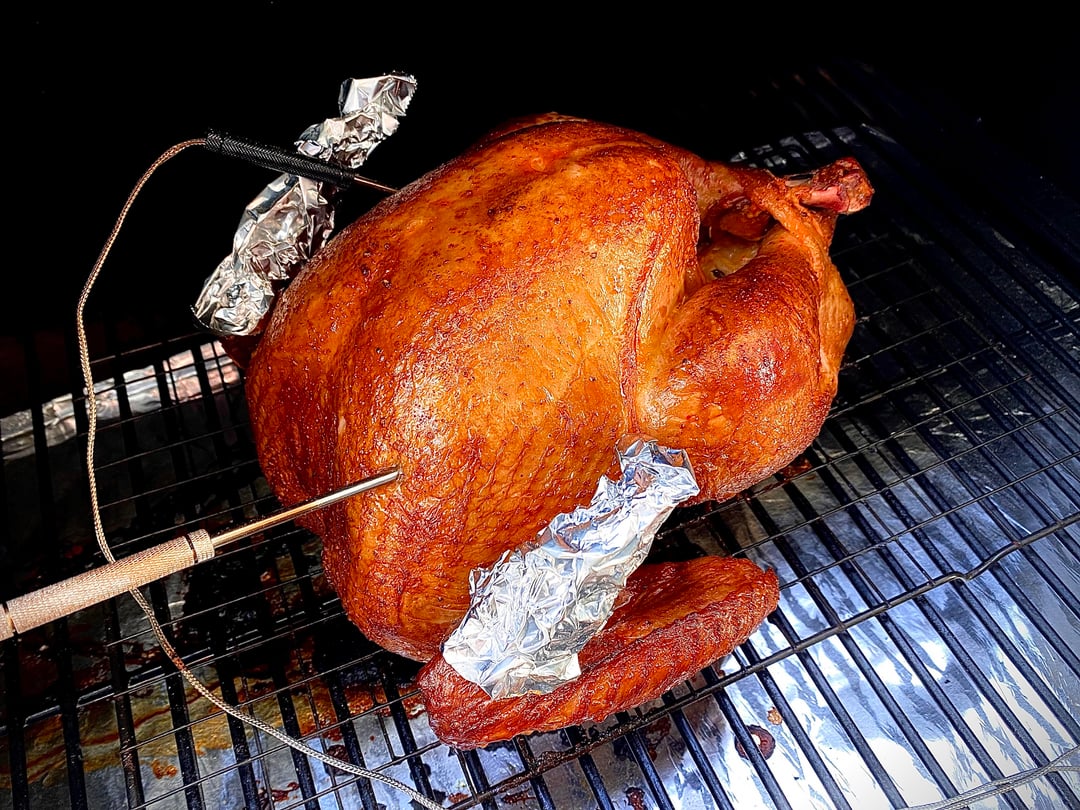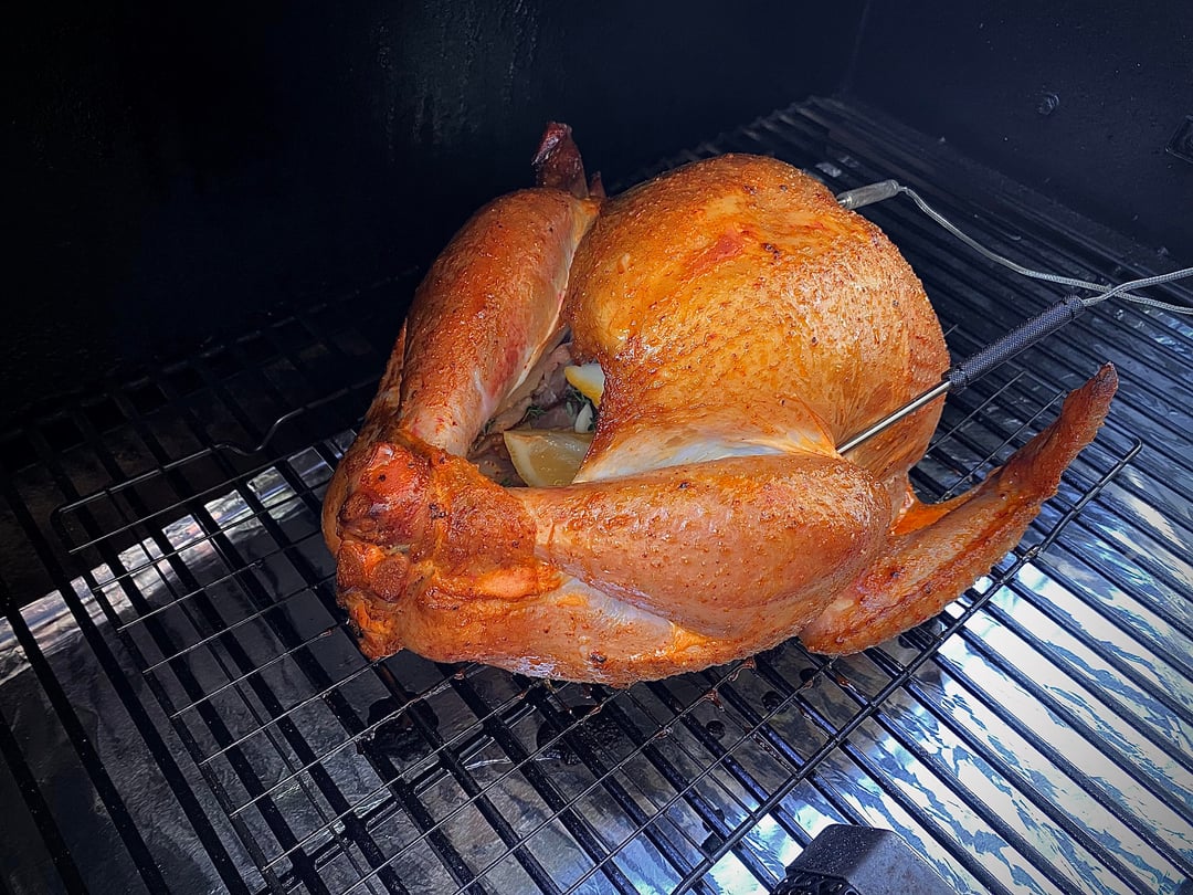 I did the traeger recipe, minus the thyme and rosemary, the same target as you with stuffing. Best turkey ever. Good looking bird dude.