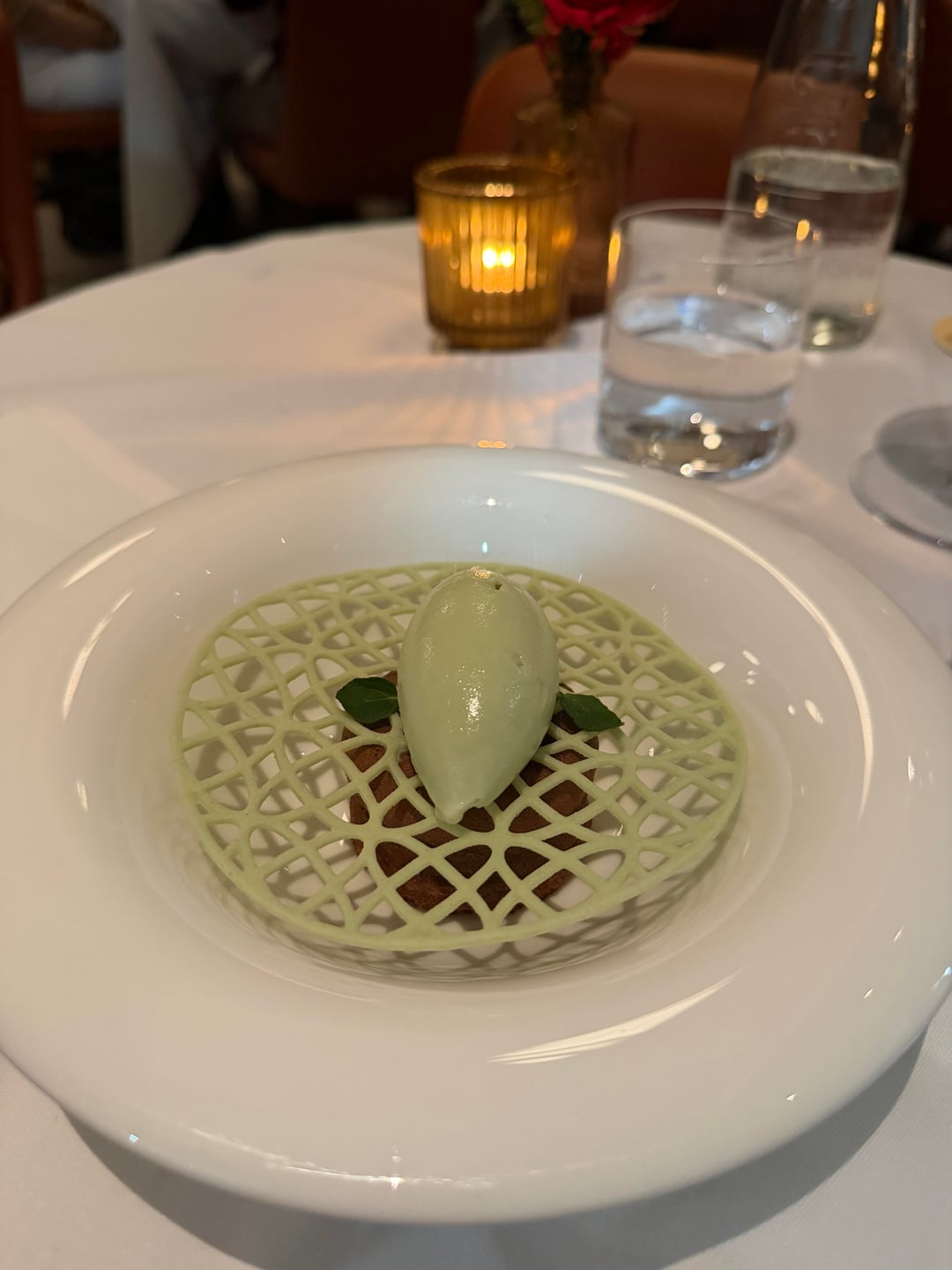 For my main I had the BAR EN PAUPIETTE SAUCE MEURETTE which was delicious. I want everything wrapped in crispy potatoes now. For desert I had the MOELLEUX AU CHOCOLAT for dessert and the mint-ice cream went very well with the rich dark chocolate.