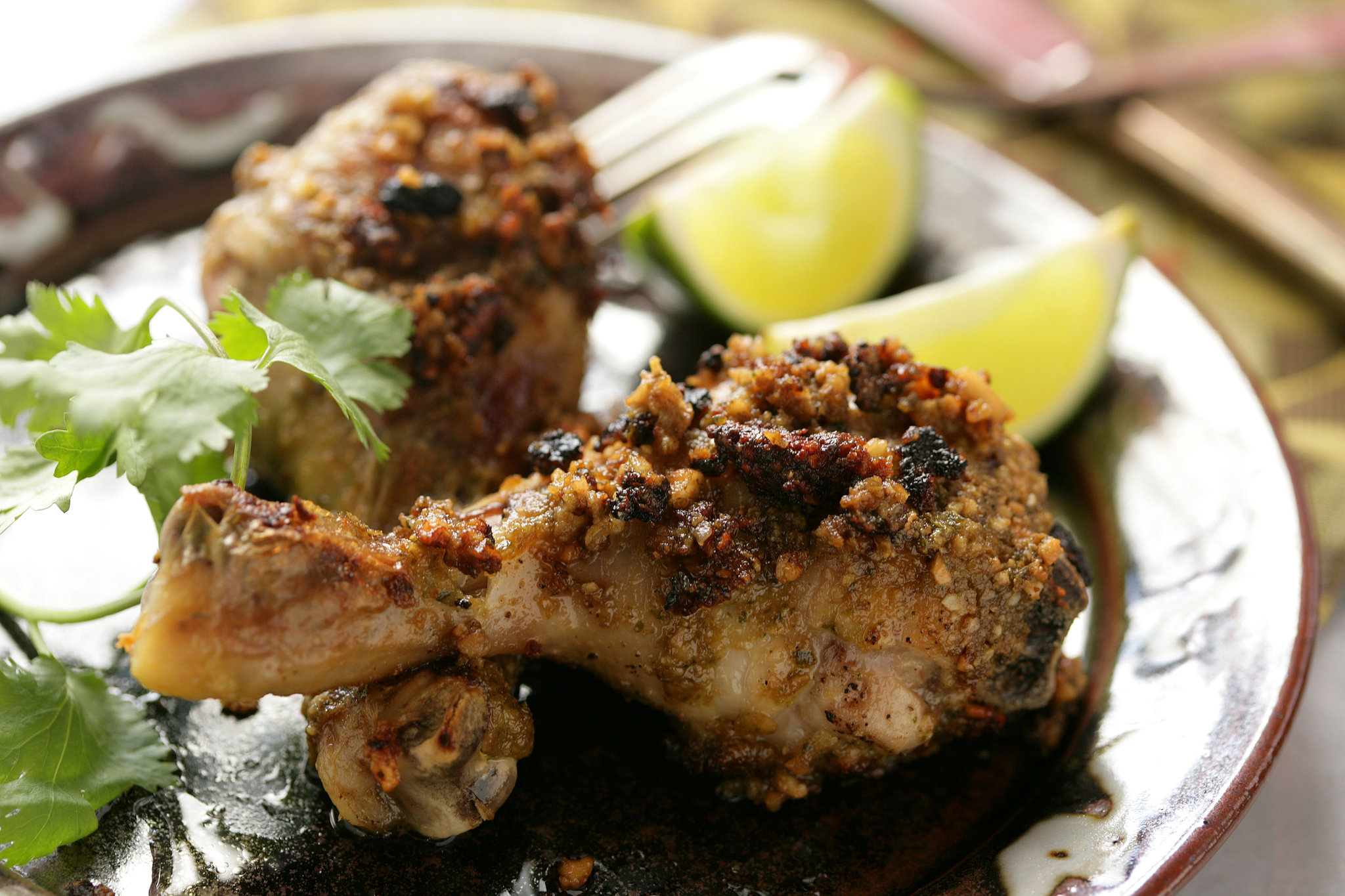 - Sprinkle chicken with remaining cilantro and serve with lime wedges and remaining cashew mixture.