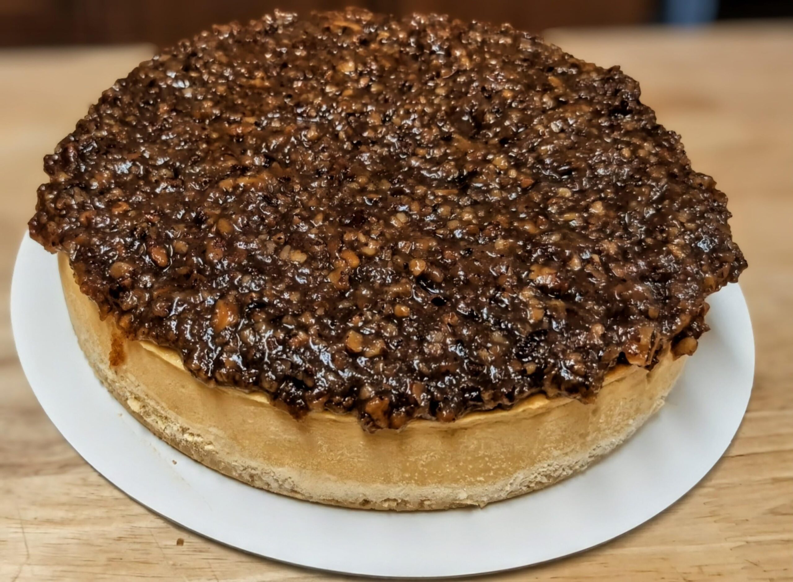 Brown sugar cheesecake with a pecan shortbread crust and pecan oie filling topping. by jeridley Dining and Cooking