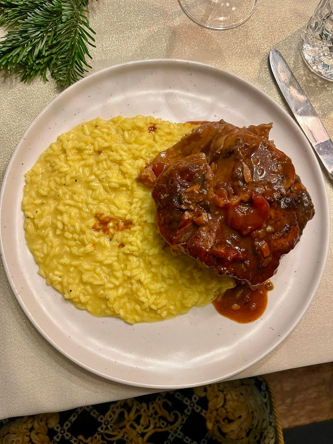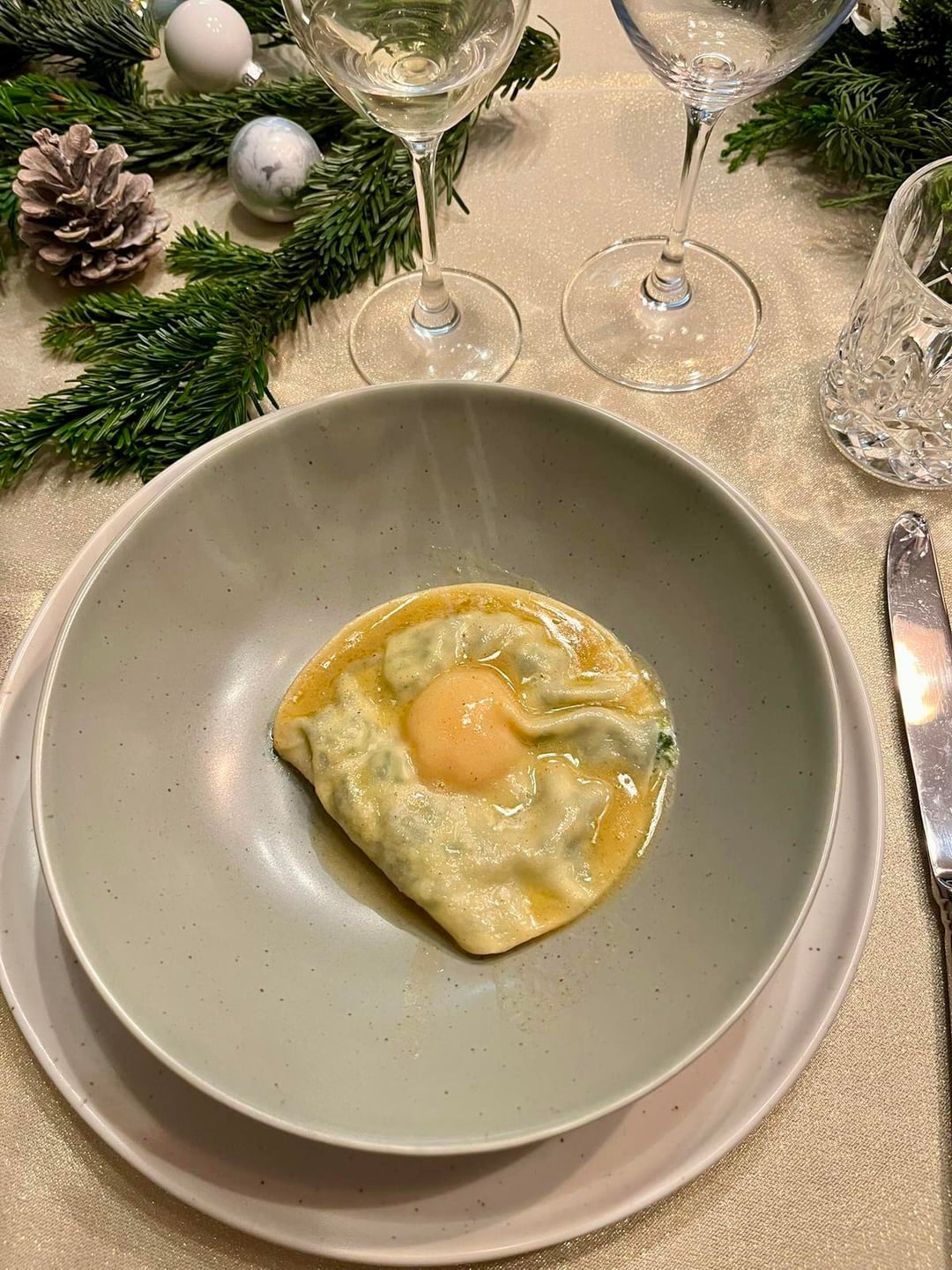 Runny-yolk raviolo and ossobucco with saffron risotto