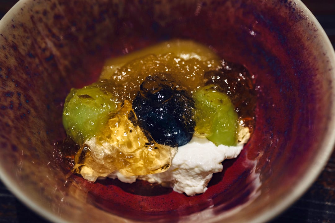 Cream cheese mousse, pear, mouscat grape, and hojicha jelly – my friend received osmanthus jelly while they switched to tea jelly because they knew I loved drinking tea. Refreshing and delicious, nice way to end the meal